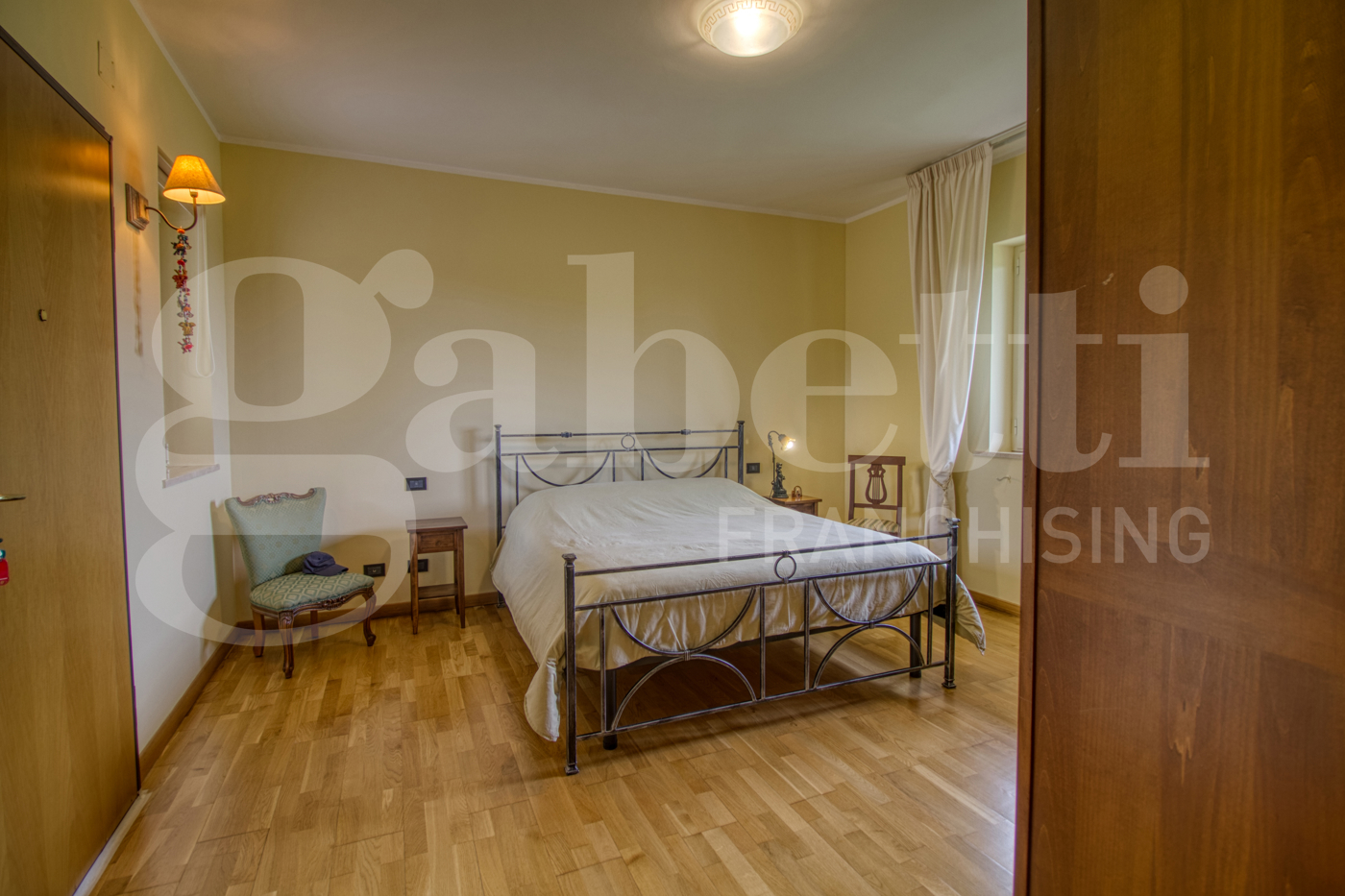L'immobile si sviluppa su due livelli e dall'ampio viale, nel quale si possono parcheggiare comodamente tre auto, si passa per un portico attrezzato dal quale si accede all'abitazione; al piano terra troviamo un comodo e luminoso salone con angolo cottura e predisposizione per il camino, un disimpegno dal quale si accede ad una camera matrimoniale e a un bagno.