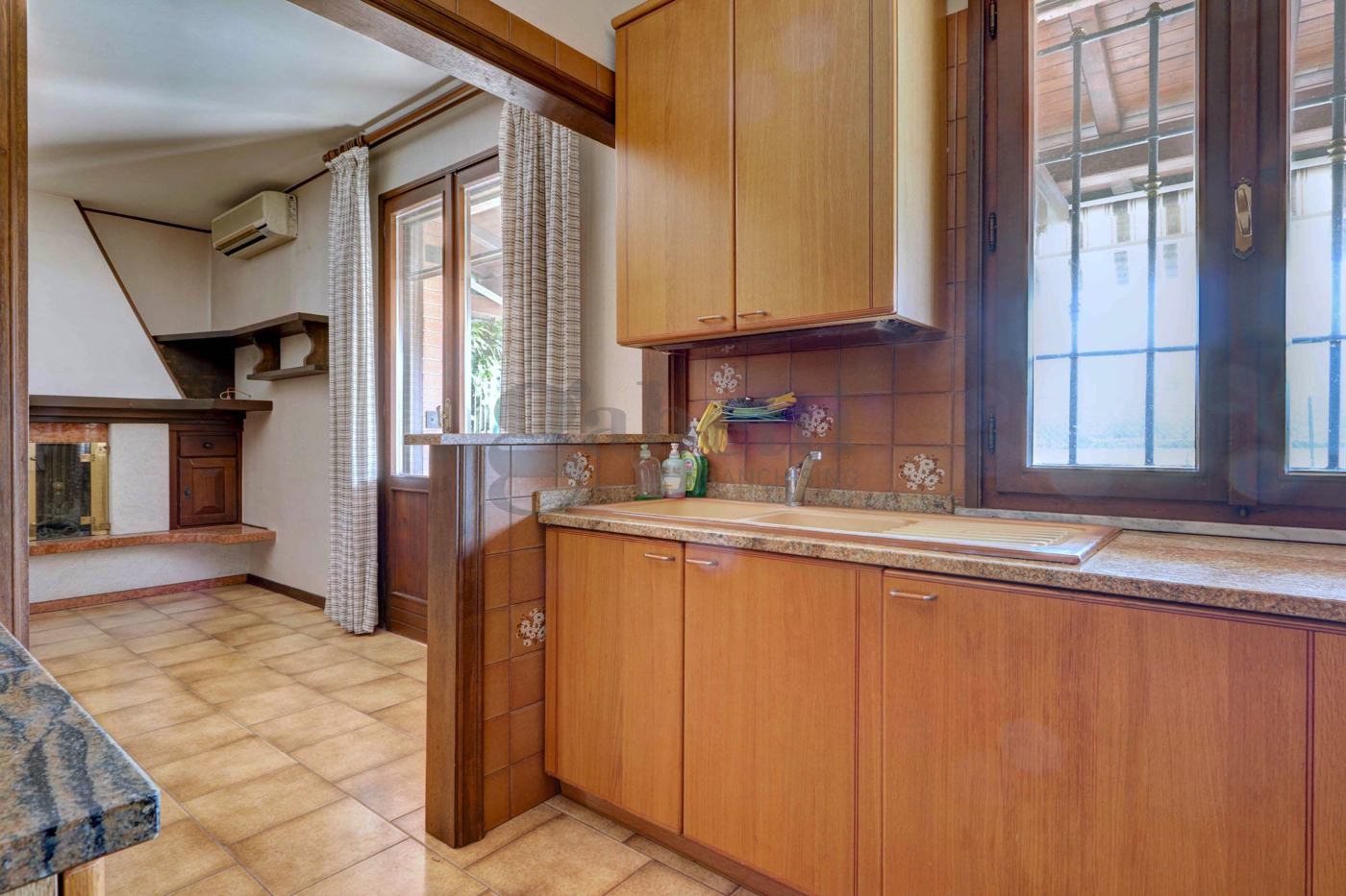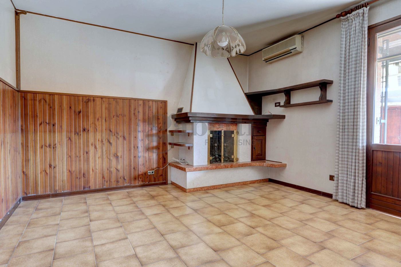 Villa a schiera di centro, con area cortiliva di circa 100 mq. Piano terra composto da piacevole portico, ingresso, soggiorno, tinello con camino, cucinotto a vista e accesso al cortile.