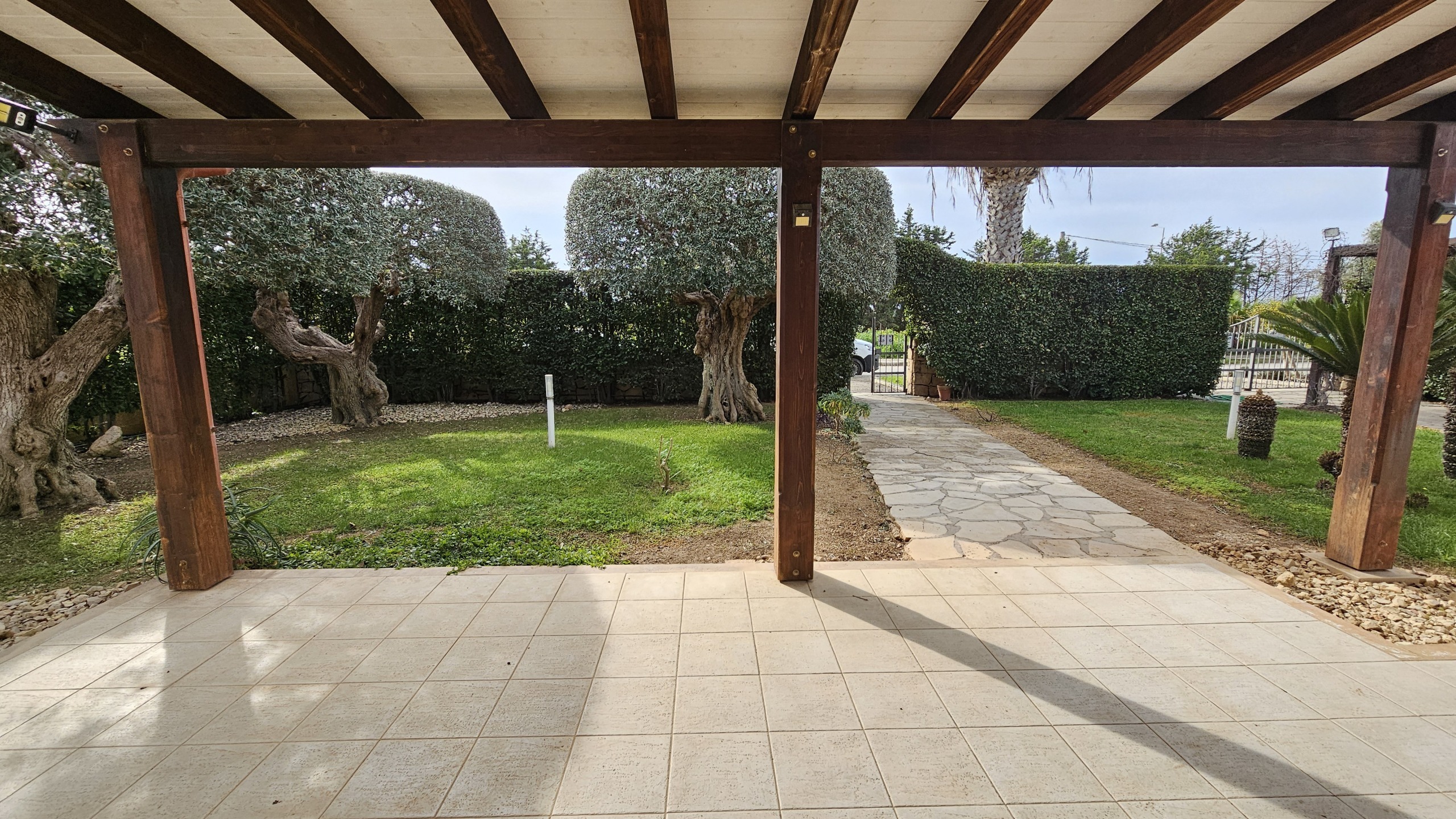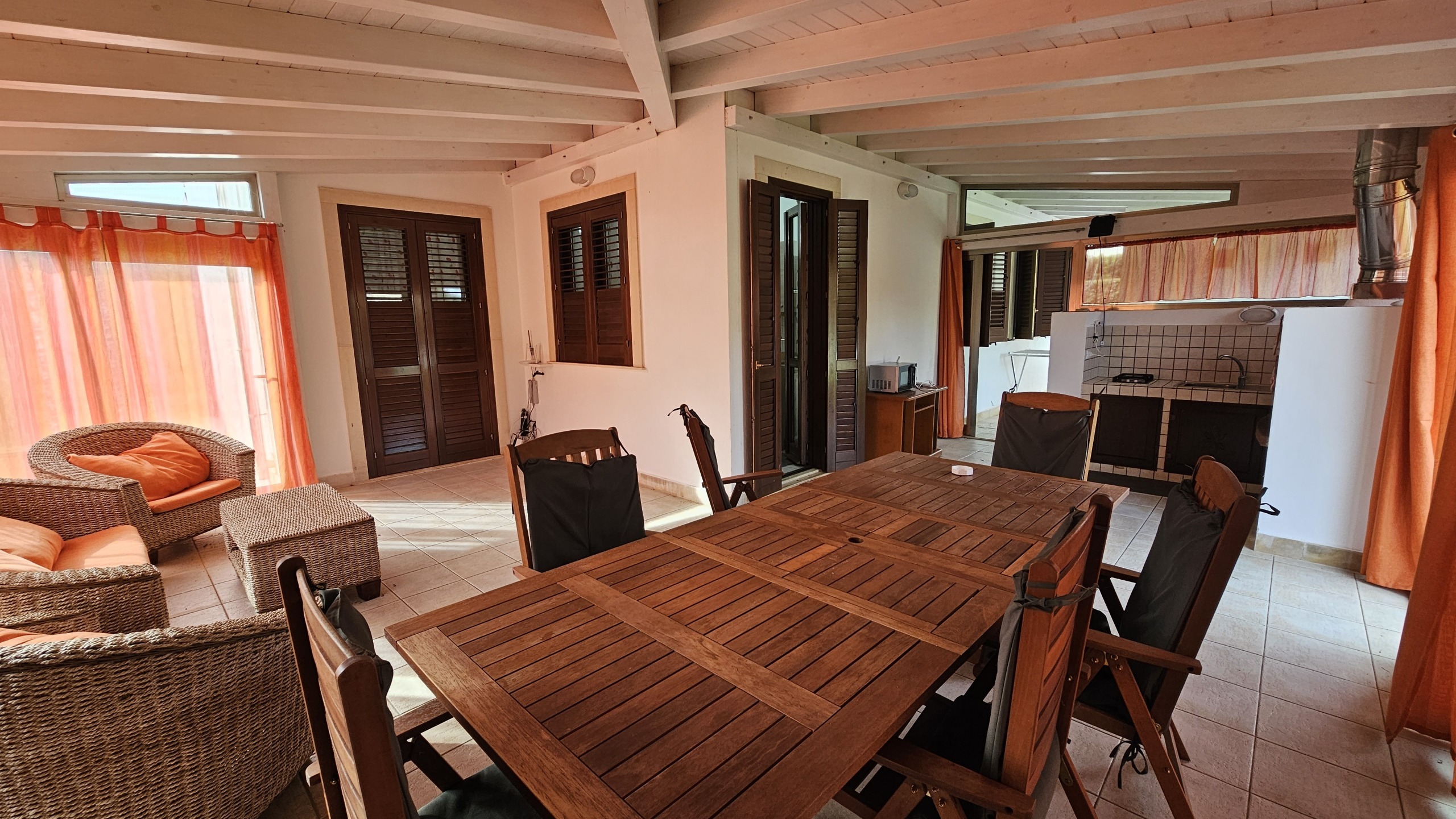 Allesterno la proprietà offre numerosi spazi pensati per godere appieno della vita allaria aperta: una comoda veranda coperta, una piscina privata, docce esterne, e lavanderia.