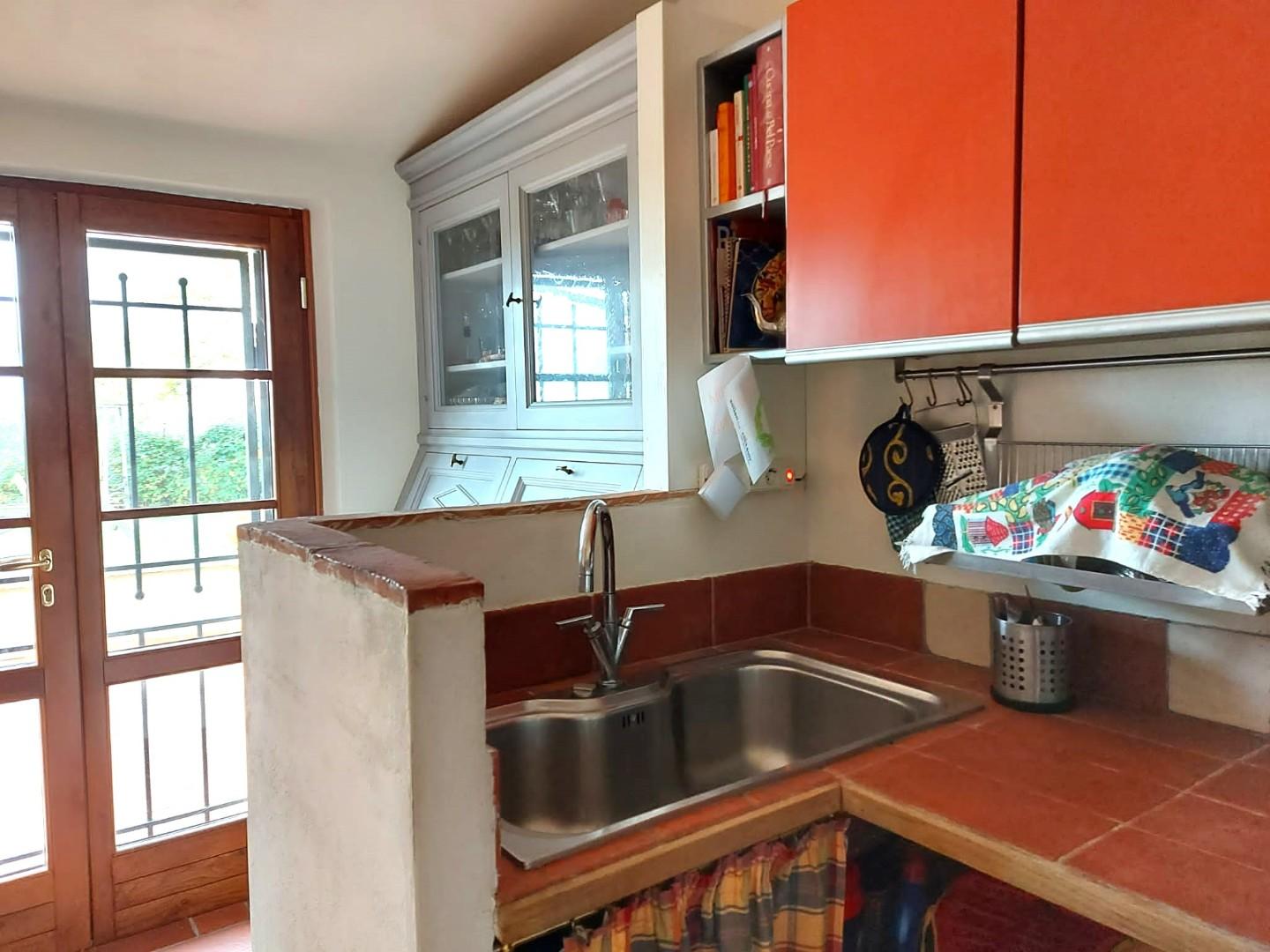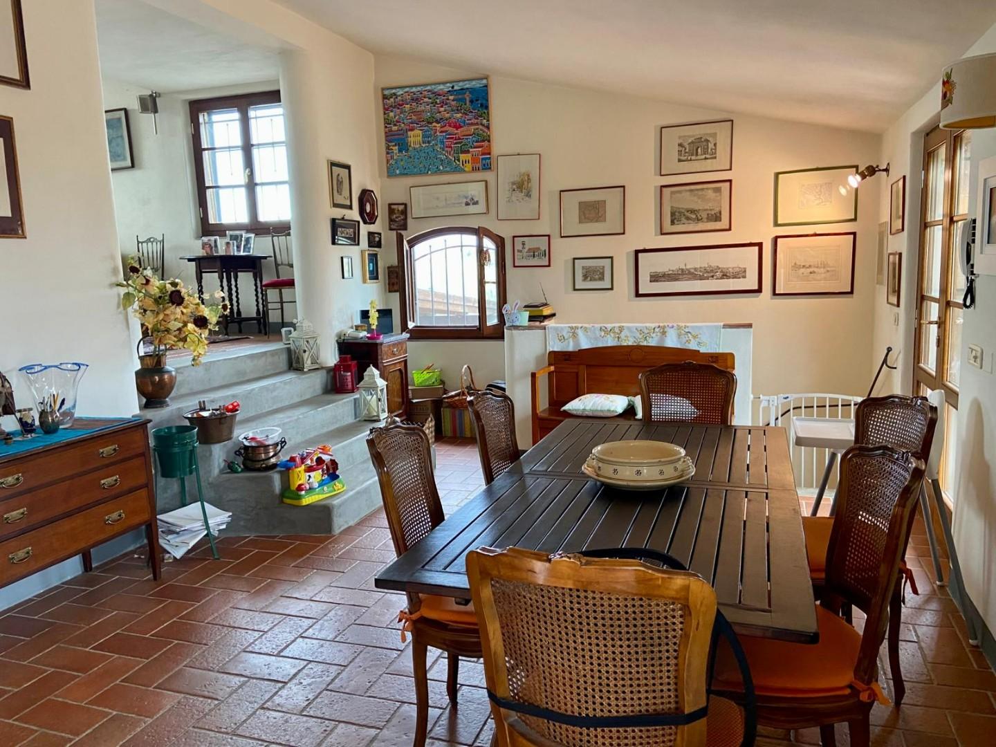La luminosa cucina/pranzo cattura subito l'attenzione con le sue grandi finestre con accesso diretto al giardino che gode di vista spettacolare sulla città di Siena.