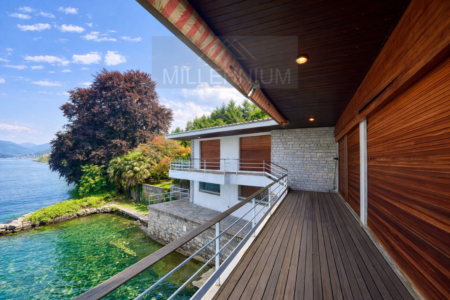 REAL ESTATE MILLENNIUM Immobiliare TEL 0322/240482, CELL 348/8876200 (whatsapp) ***.*******.** Stunning location and Fabulous Views for this particular Villa of modern architectural imprint with large Terraces, Private Garden of about 1000 square meters and spacious Dock with direct access to Lake Maggiore, distant 5 minutes from the prestigious Stresa and the Borromean Islands.