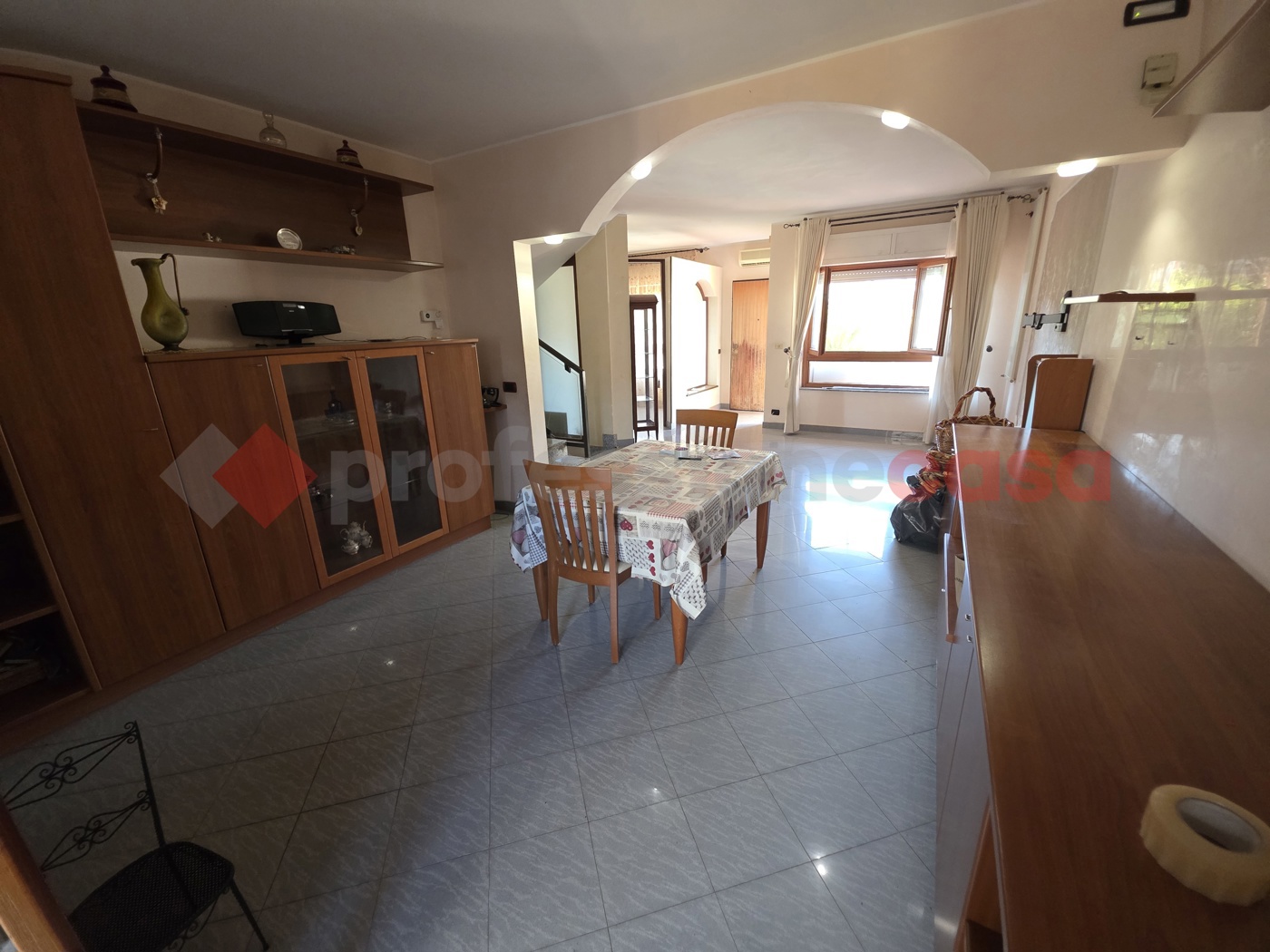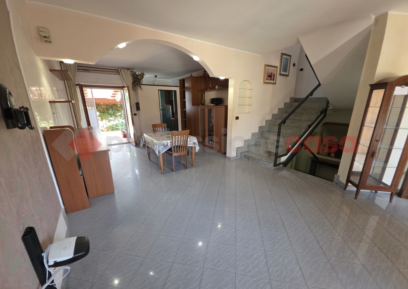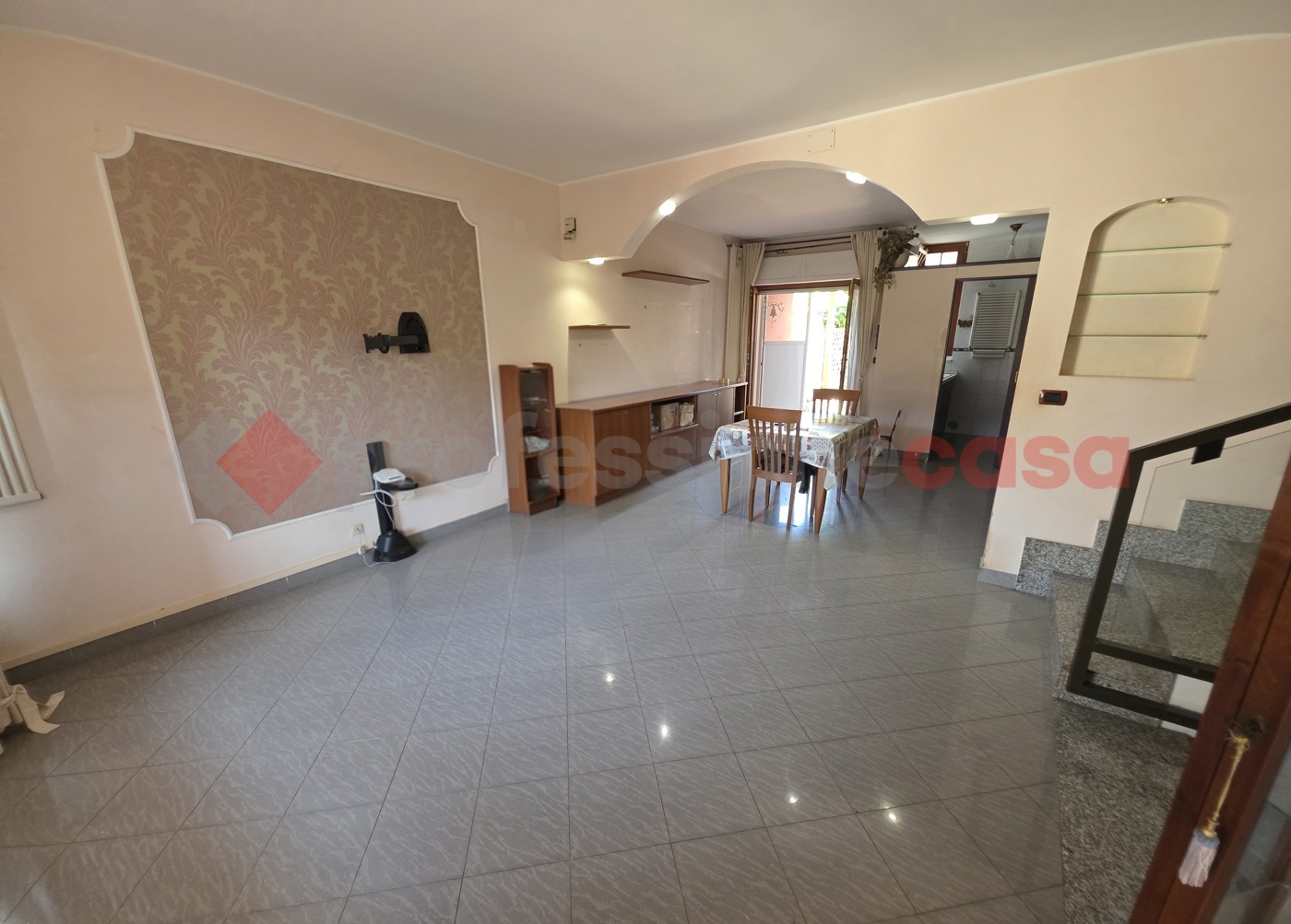 Al piano terra, lingresso si apre su un accogliente salone, affiancato da un pratico cucinino e un piccolo studio, ideale per chi necessita di uno spazio riservato.