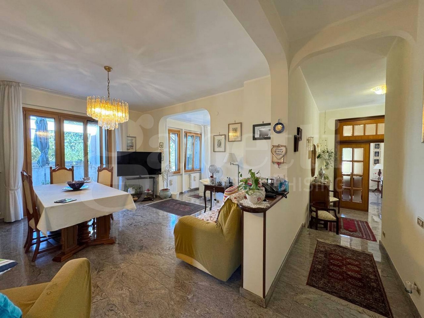 Nei pressi del nuovo ospedale proponiamo una bellissima villa singola, imponente nelle dimensioni e curata nei dettagli, circondata da un ampio parco privato di circa 1.730 mq. Al pian terreno troviamo un ingresso sul disimpegno, cucina abitabile, bagno di servizio finestrato, doppio e luminosissimo salone con camino ed una comoda camera da letto; La zona notte invece posta al primo piano ed ospita quattro grandi camere da letto, una delle quali con bagno privato e secondo bagno con vasca; Completa la propriet un'elegante ed accogliente taverna con camino, cucina a vista, comoda lavanderia, ripostiglio ed accesso al garage di circa 26 mq. Lo spazio esterno di grandi dimensioni, piantumato con alberi ad alto fusto che garantiscono ombra e privacy, include un bellissimo patio esterno di 18 mq ed un ulteriore terrazzo di 16 mq e per finire unampia area destinata al parcheggio, comoda per ospitare pi veicoli allinterno della propriet.