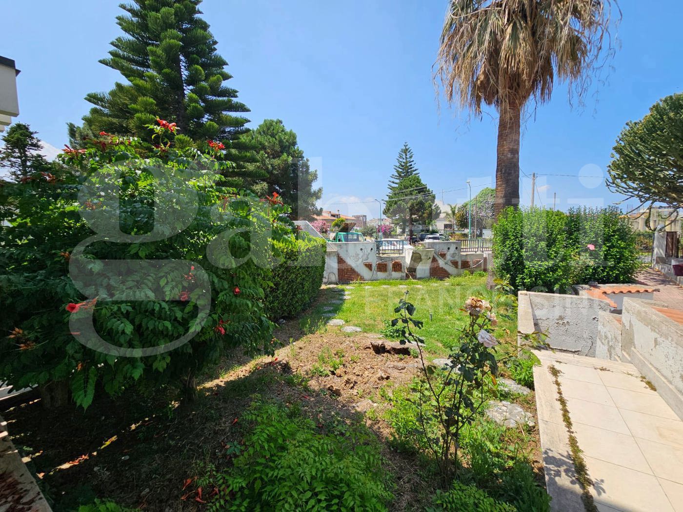 La villa caratterizzata da un ampio giardino verde di circa 800 mq che circonda l'abitazione, oltre un grande patio che delimita tutto il piano terra e panoramici terrazzi ai piani superiori.