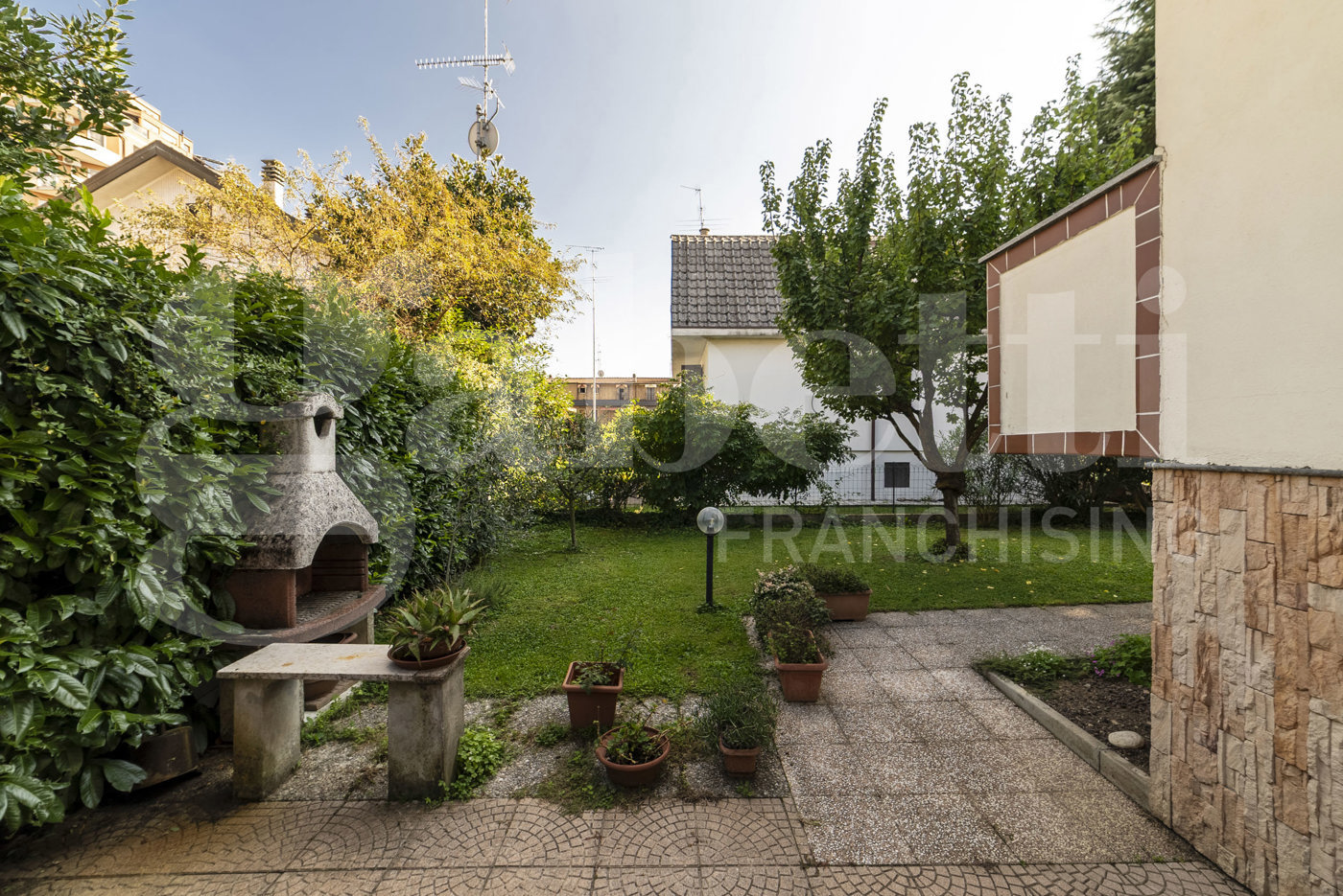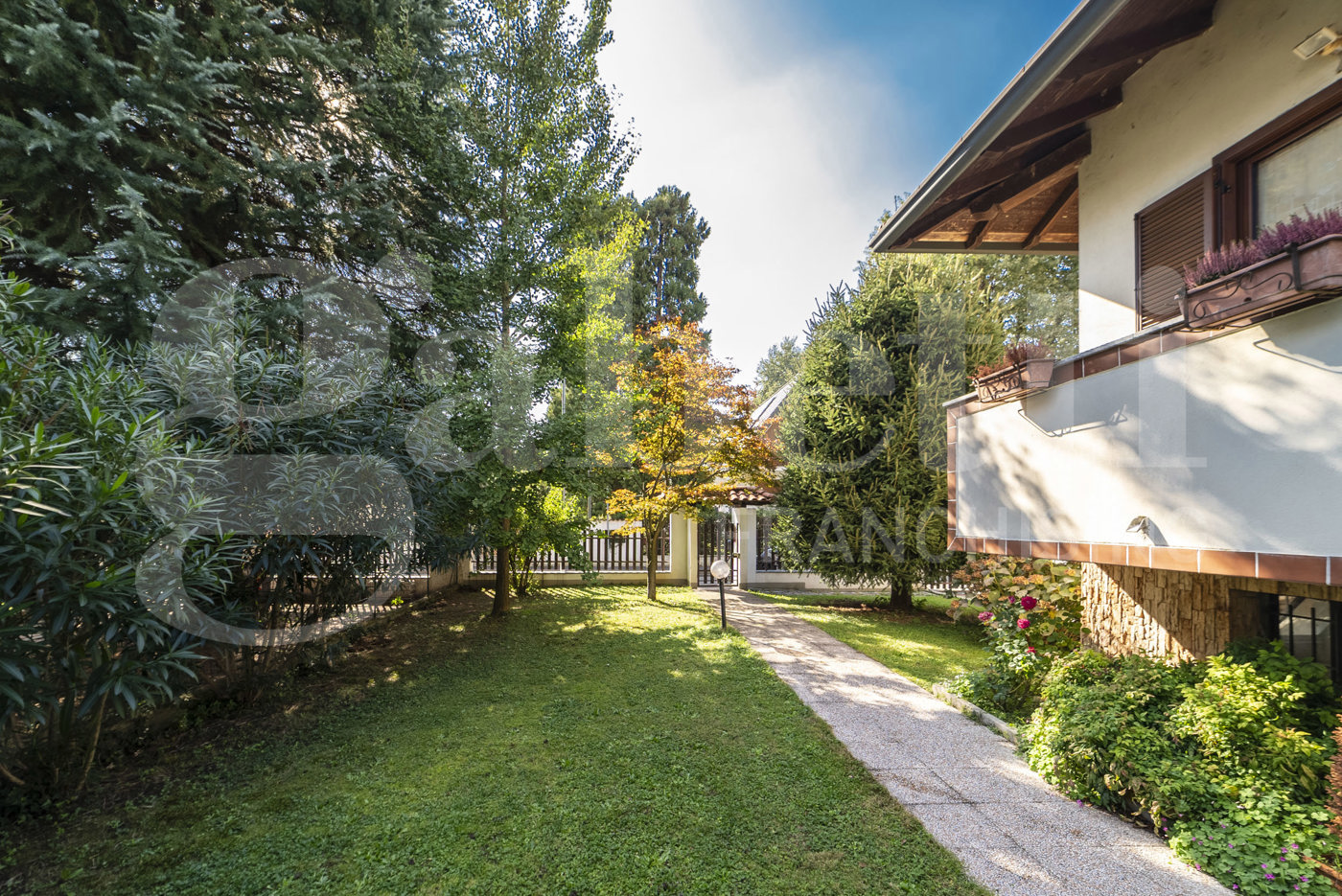 completano la proprieta' i due box e l' ampio giardino, perfettamente curato, sui 4 lati. immobile in ottimo stato: impianto di allarme verisure, perimetrale e volumetrico - impianto di condizionamento con pompa di calore - infissi esterni doppio vetro con persiane in alluminio.