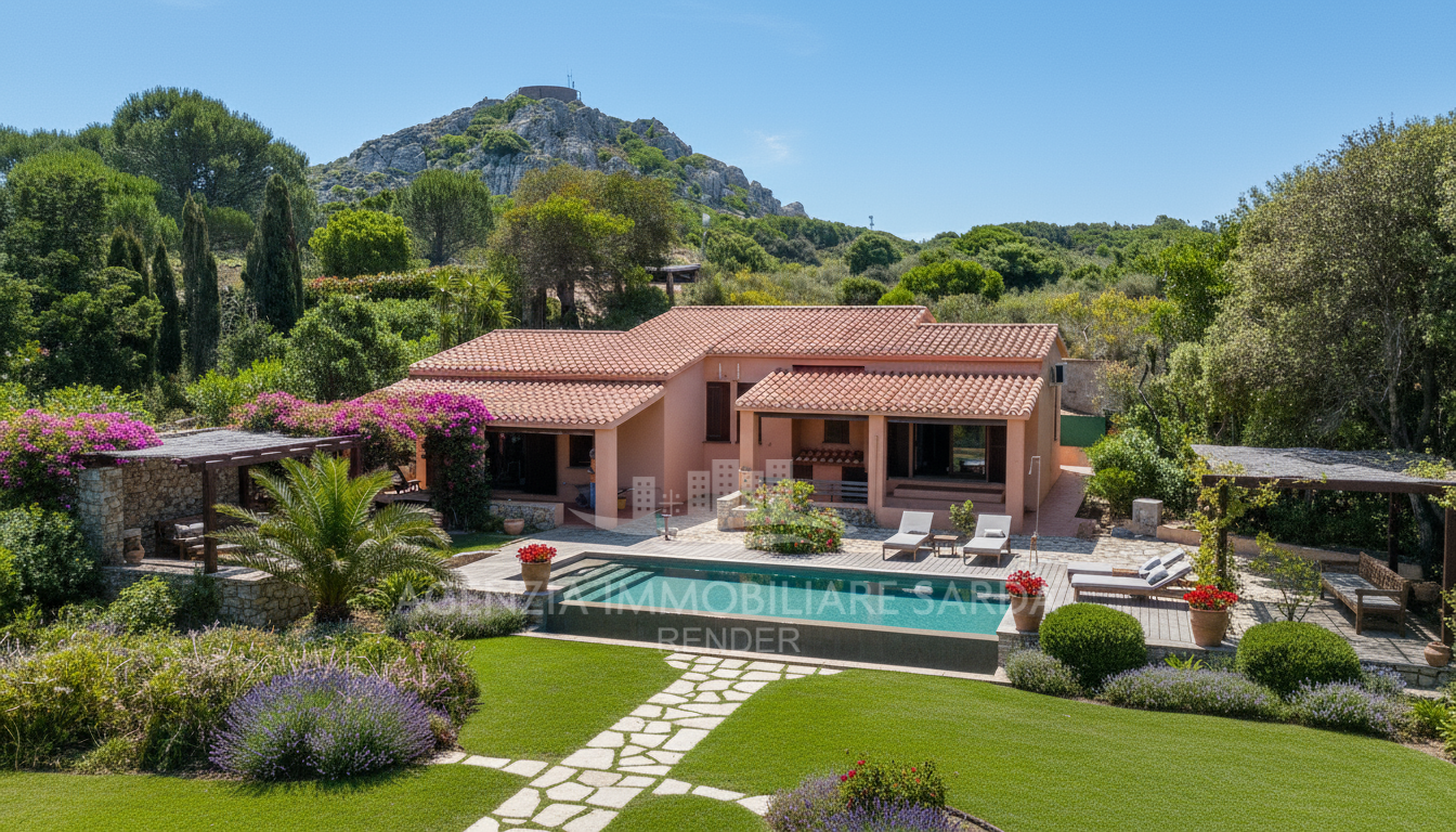 Costa Paradiso Casa Indipendente con Vista Panoramica, Giardino e Garage In posizione collinare e panoramica, proponiamo una casa indipendente circondata dal verde, con giardino privato, garage, posti auto e cantina.