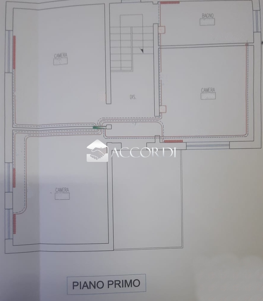 Al primo piano troviamo tre spaziose camere matrimoniali, di cui una predisposta per essere adibita a seconda cucina grazie alla presenza degli attacchi.