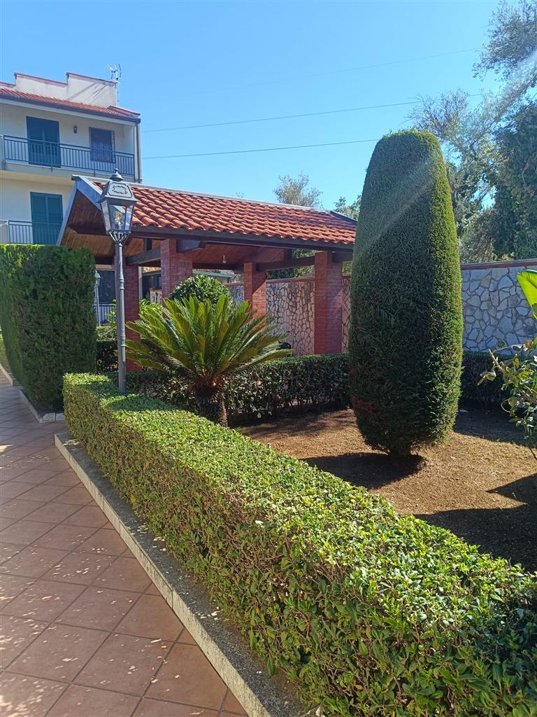 La Villa Unifamiliare è così composta: Piano Terra: Ingresso su ampio soggiorno-pranzo-living con scala a vista, disimpegno con armadio a muro, cucina abitabile, bagno oltre balcone angolare; Piano Primo: vano scala, disimpegno, camera da letto matrimoniale con bagno con doccia in camera, n. 2 camerette di cui una risulta cabina armadio e armadio a muro, bagno con vasca oltre balcone angolare; Piano Secondo: vano scala, n. 2 camere separate con ampio corridoio, cucina in muratura e bagno con doccia, oltre balcone angolare.