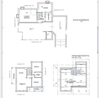 Villetta ad uso civile abitazione, composta da ampia autorimessa, locale tecnico, lavanderia, cantina e due locali di sgombero alpiano interrato; appartamento di soggiorno-cucina, due camere e bagno al piano terreno e due locali disgombero non abitabili al piano sottotetto.