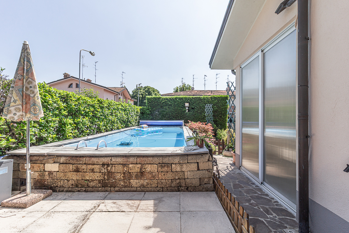 In Centro a Dosso, in tranquilla zona residenziale, graziosa villa singola con finiture di pregio, edificata nel 1998 con ristrutturazione per ampliamento del primo piano nel 2011, caratterizzata da spazi generosi, alto risparmio energetico, giardino, garage doppio e piscina privata.
