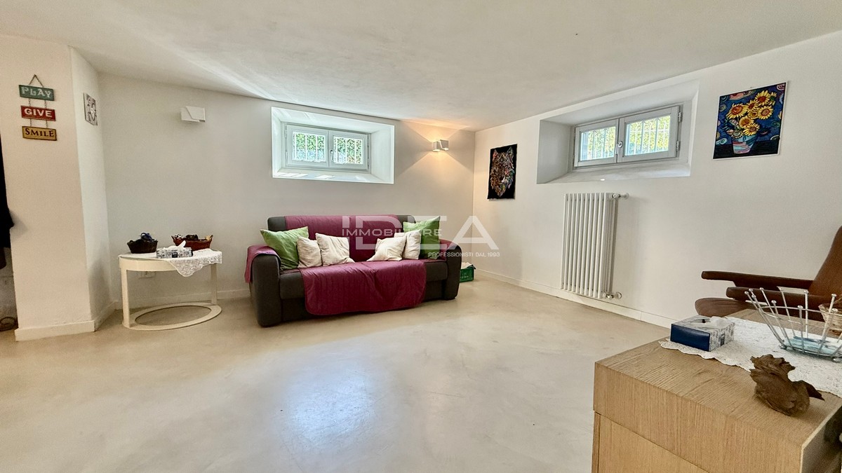 La villa su sviluppa su pi livelli ed composta al piano terra rialzato da ingresso, luminoso ampio soggiorno-pranzo con camino, cucina abitabile e bagno con doccia, al piano primo troviamo tre comode camere da letto, un bagno con comoda doccia e balcone; al piano seminterrato troviamo tre spaziosi vani ad uso cantina pluriuso con accesso diretto al giardino, attualmente utilizzati come secondo soggiorno, piccola cucina, camera/studio, locale lavanderia, locale tecnico e bagno con doccia.