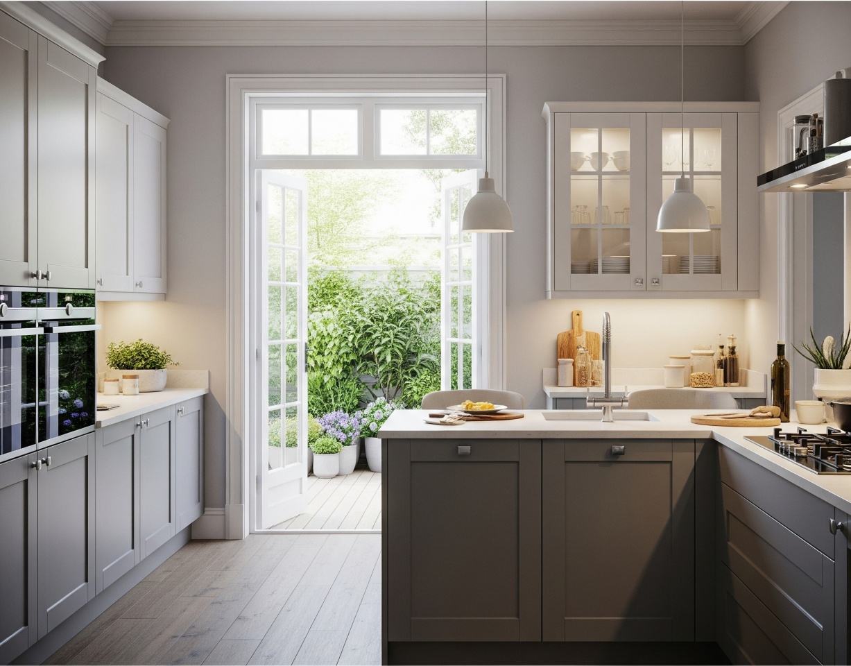 Finestre e porte finestre in PVC con avvolgibili motorizzati in alluminio coibentato.
