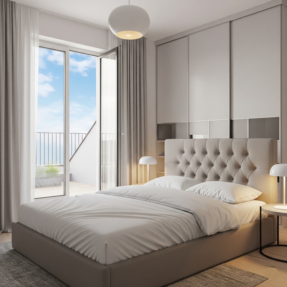 I pavimenti in piastrelle di gres porcellanato (possibilità di modifiche). Predisposizione per condizionamento nelle camere e in cucina.