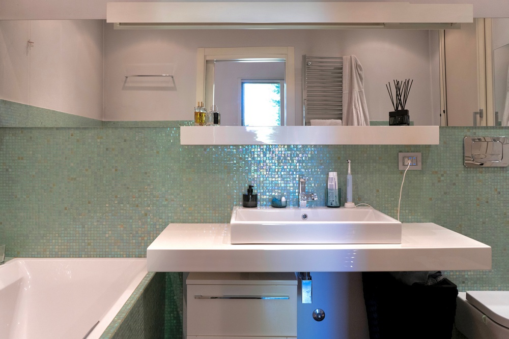 Al piano seminterrato si trovano una moderna palestra con doccia oversize, taverna attrezzata, lavanderia, ripostiglio e garage doppio, oltre a due posti auto coperti.