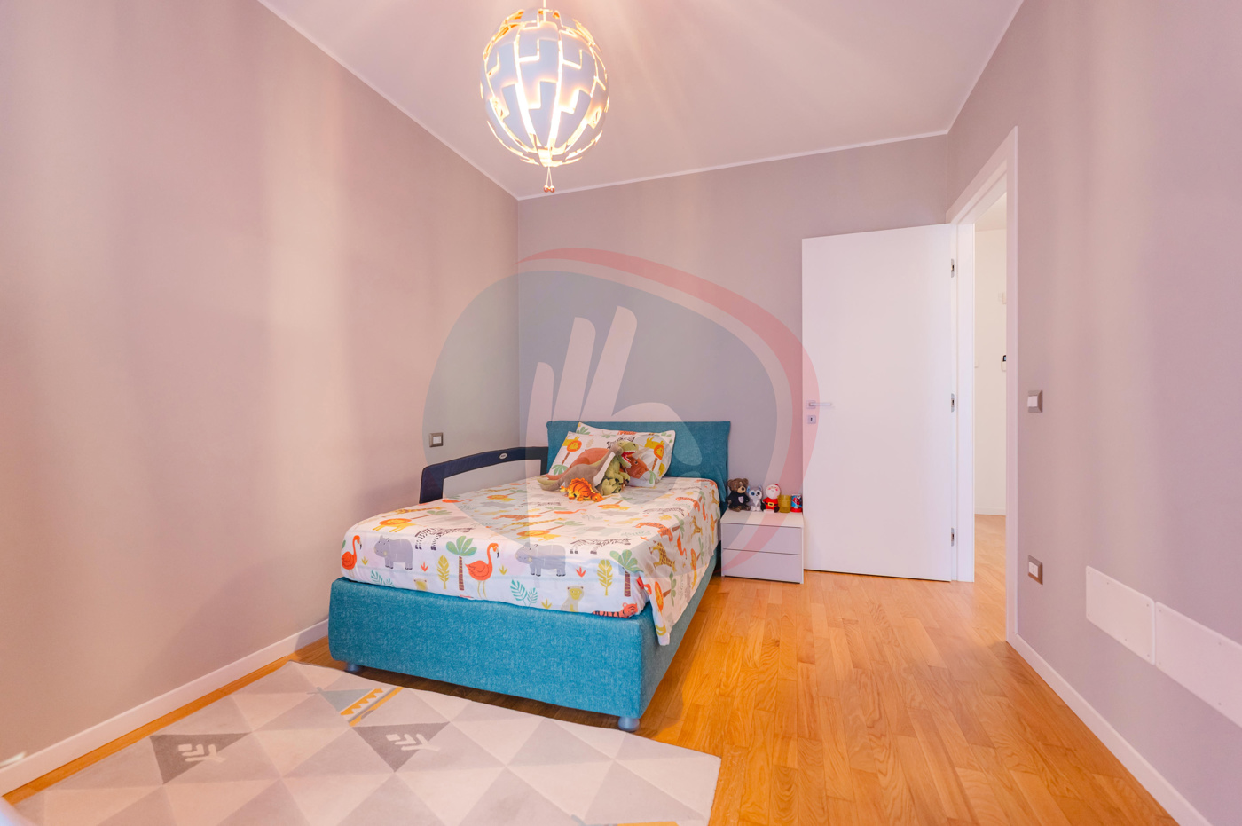 Il piano primo offre due camere da letto, di cui una padronale con cabina armadio (22 mq), una camera doppia di 12 mq, un ulteriore bagno di servizio finestrato e un ripostiglio.