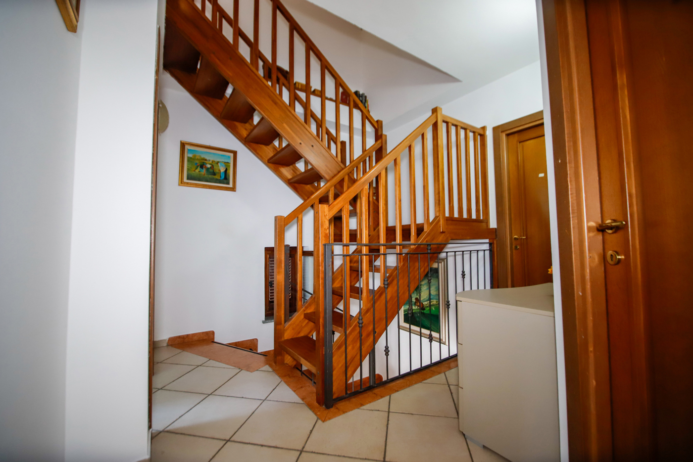 La comoda scala interna conduce al primo piano, nel quale troviamo una camere da letto padronale con balcone, camera con TERRAZZO, cameretta e bagno.