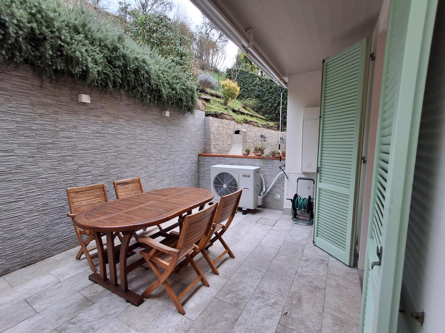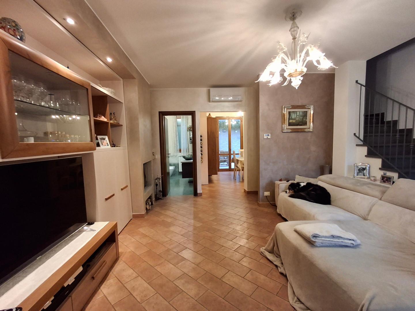 In posizione residenziale, ottimo contesto e UBICATA IN STRADA PRIVATA, villetta a schiera di recente costruzione di 180 mq. disposta su più livelli e composta a piano terreno-rialzato da ampio soggiorno con camino, cucina abitabile dalla quale si accede a resede tergale che offre molta privacy, al piano terreno bagno di servizio; al primo piano collegato da scale partenti dal soggiorno, troviamo un disimpegno notte, camera matrimoniale con terrazzo, una camera singola, uno studio da adibire eventualmente anche a camerina, che affacciano su terrazzo comunicante, bagno con vasca, oltre a mansarda con terrazzo a tasca.