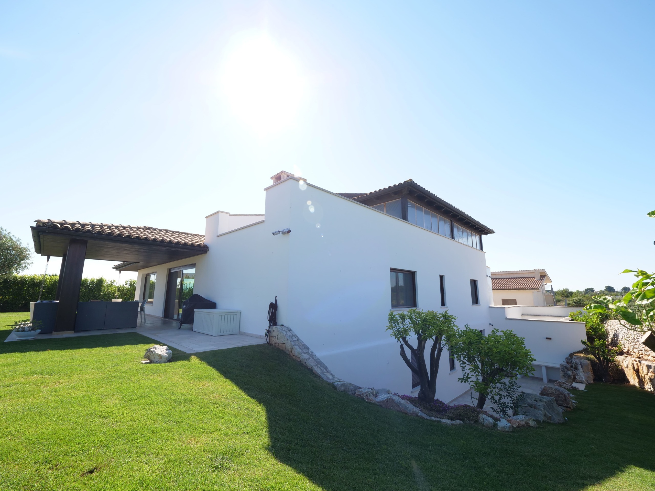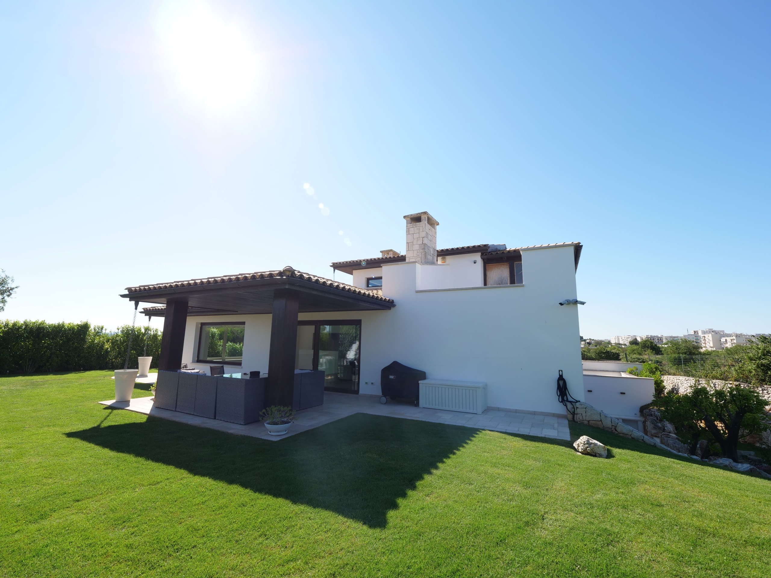 Immersa nella splendida campagna dell'agro di Ostuni, questa villa panoramica rappresenta un'oasi di tranquillità e lusso, con una vista mozzafiato sulla Valle d'Itria.