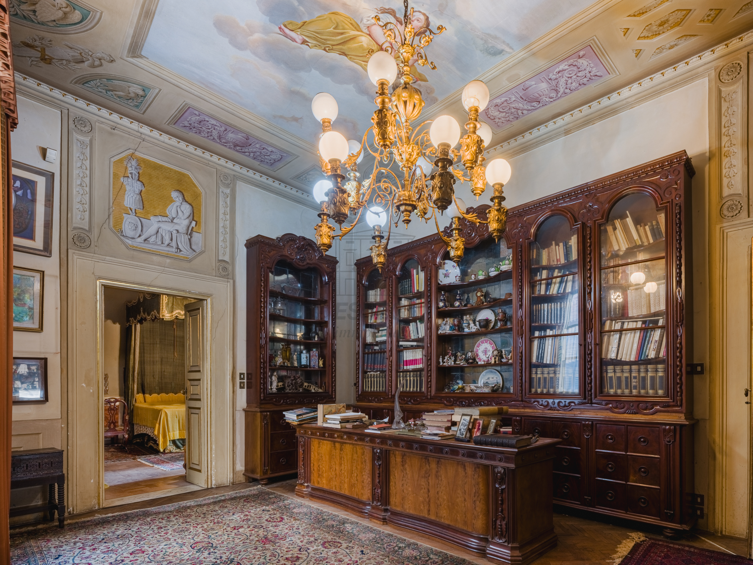 Al piano primo un appartamento di taglio padronale di circa mq. 340 con presenza di elementi storici quali importanti affreschi risalenti al 1500, più ampia terrazza.