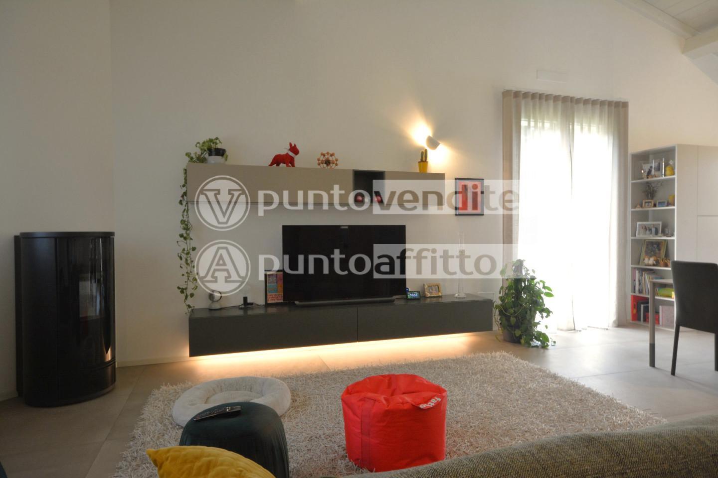 La villa è composta da ampio ingresso-soggiorno-pranzo, cucina abitabile con accesso a ampia terrazza di 24 mq, 2 camere da letto matrimoniali, bagno al piano terra; tramite elegante scala in pietra si accede al piano mansardato (mq 25) dove è stata realizzata una camera matrimoniale con bagno; tramite scala interna si accede al piano seminterrato, accessibile anche da diverse porte finestra con accesso diretto dall'ampio porticato (mq 35) e dal giardino, dove trovaimo una taverna attrezzata con seconda cucina, bagno, locale pluriuso, locale caldaia/lavanderia.