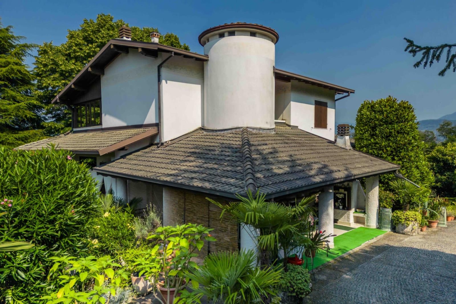 Gli spazi esterni sono pensati per essere vissuti durante tutto l’anno: la proprietà dispone di una piscina privata con area relax, di un terreno di 3.000 mq piantumato con alberi.
