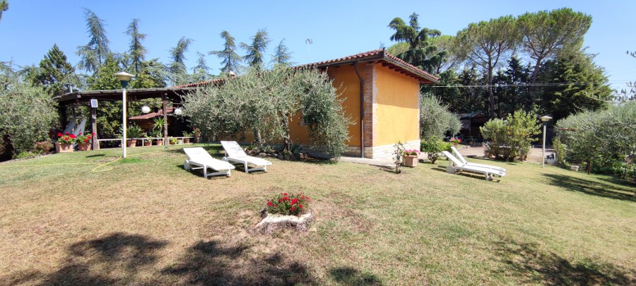 Villetta indipendente realizzata nel 1970 per complessivi 320 mq per lo più al piano terra circondata da 5.000 mq di giardino recintato ed ulteriori 2 ettari tra frutteto, oliveto e spazio dedicato alla piscina di 10x20 mt. Sul terreno insiste un pozzo artesiano che garantisce acqua tutto l anno, Il giardino e servito da impianto di irrigazione.