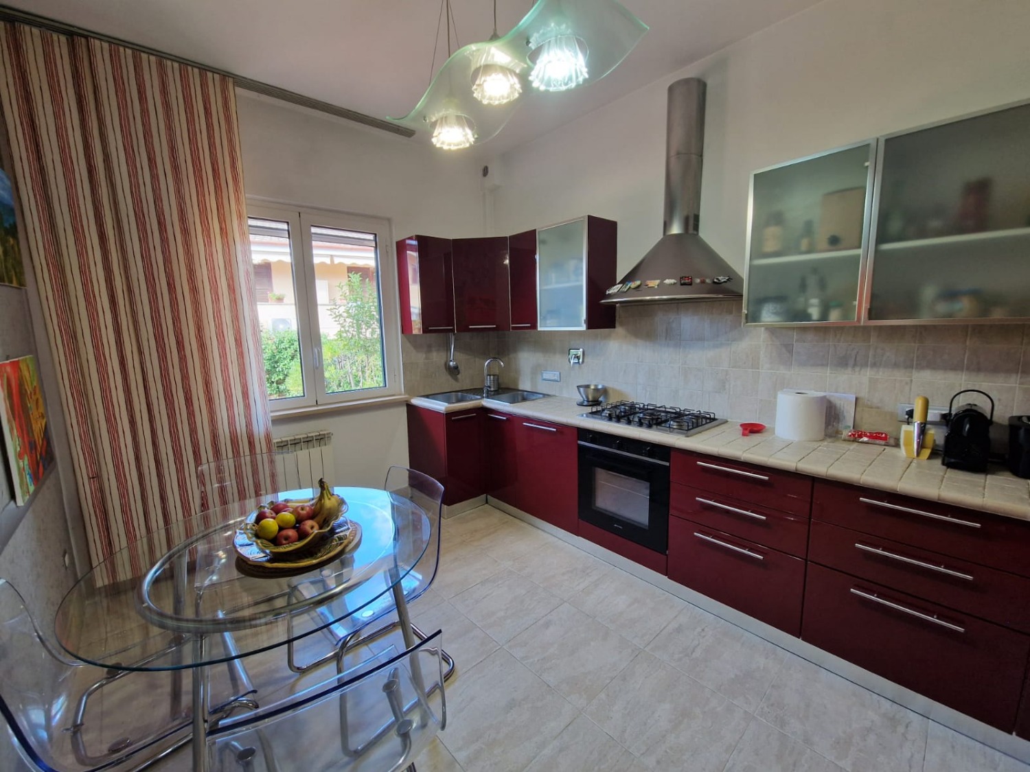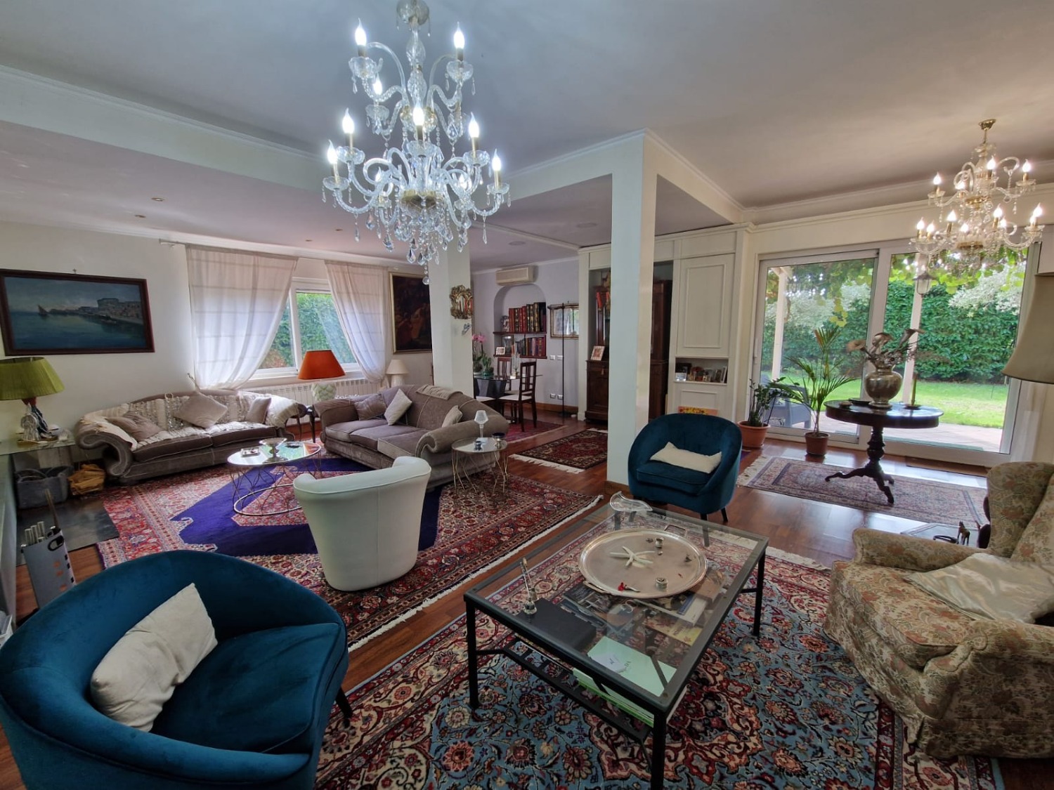 Rifiniture di qualità come caldaia a condensazione nuova, impianti elettrici parzialmente nuovi, due sistemi antifurto, infissi in alluminio bianco, persiane in acciaio zincato color verde, aria condizionata nel salone e nelle due camere matrimoniali, videocitofono, cancello carrabile automatico.