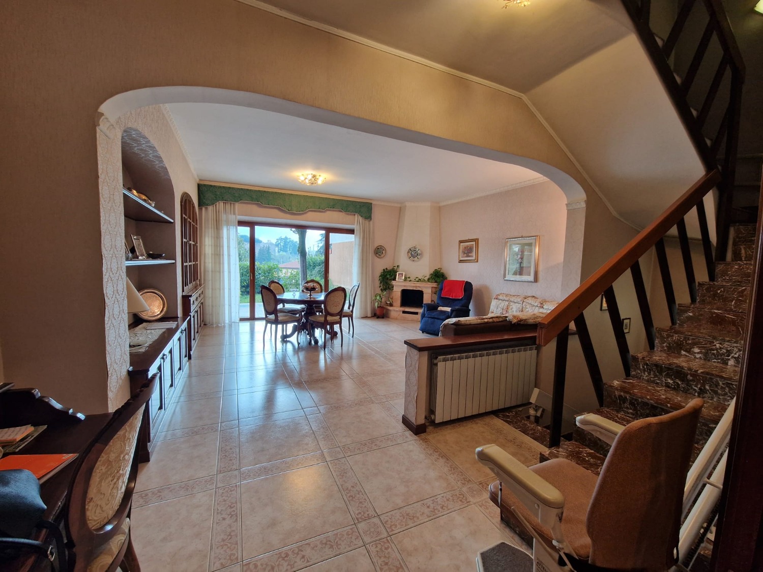 GROTTAFERRATA - Via XXIV Maggio Adiacente Squarciarelli e a tutti i servizi proponiamo in vendita una villa a schiera disposta su più livelli composta al piano terra da comodo terrazzo che funge da ingresso, salone doppio con camino ed ampia vetrata che affaccia sul giardino in parte mattonato e in parte verde, cucina abitabile e bagno finestrato.