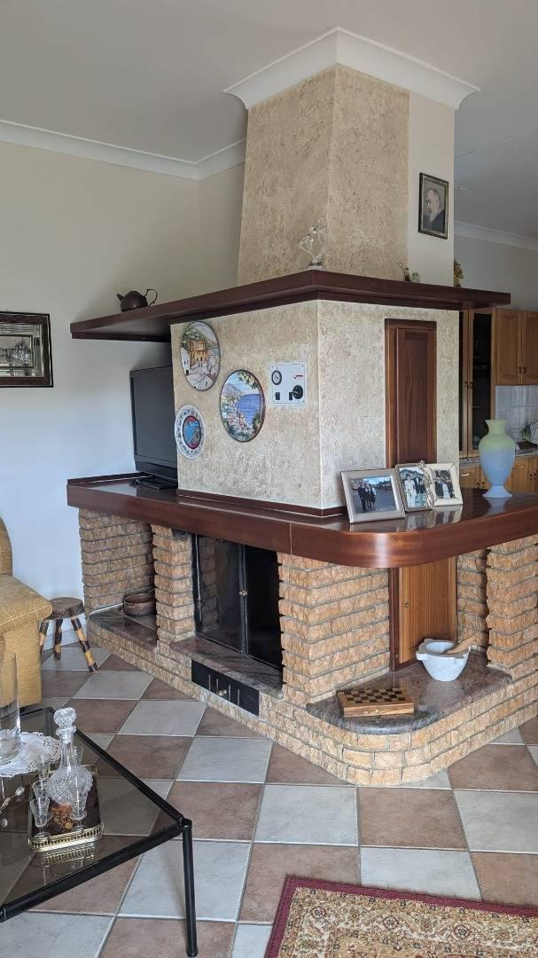 La villa si articola su tre livelli: Piano terra: ampio garage, zona living/taverna, bagno, disimpegno, magazzini Primo piano: veranda panoramica, salone con camino, cucina abitabile, due camere, bagno Mansarda abitabile: raggiungibile con scala retrattile, ideale per studio o ospiti Allesterno si trovano magazzini e locali indipendenti, ex stalle per galline, maiali, vitelli.