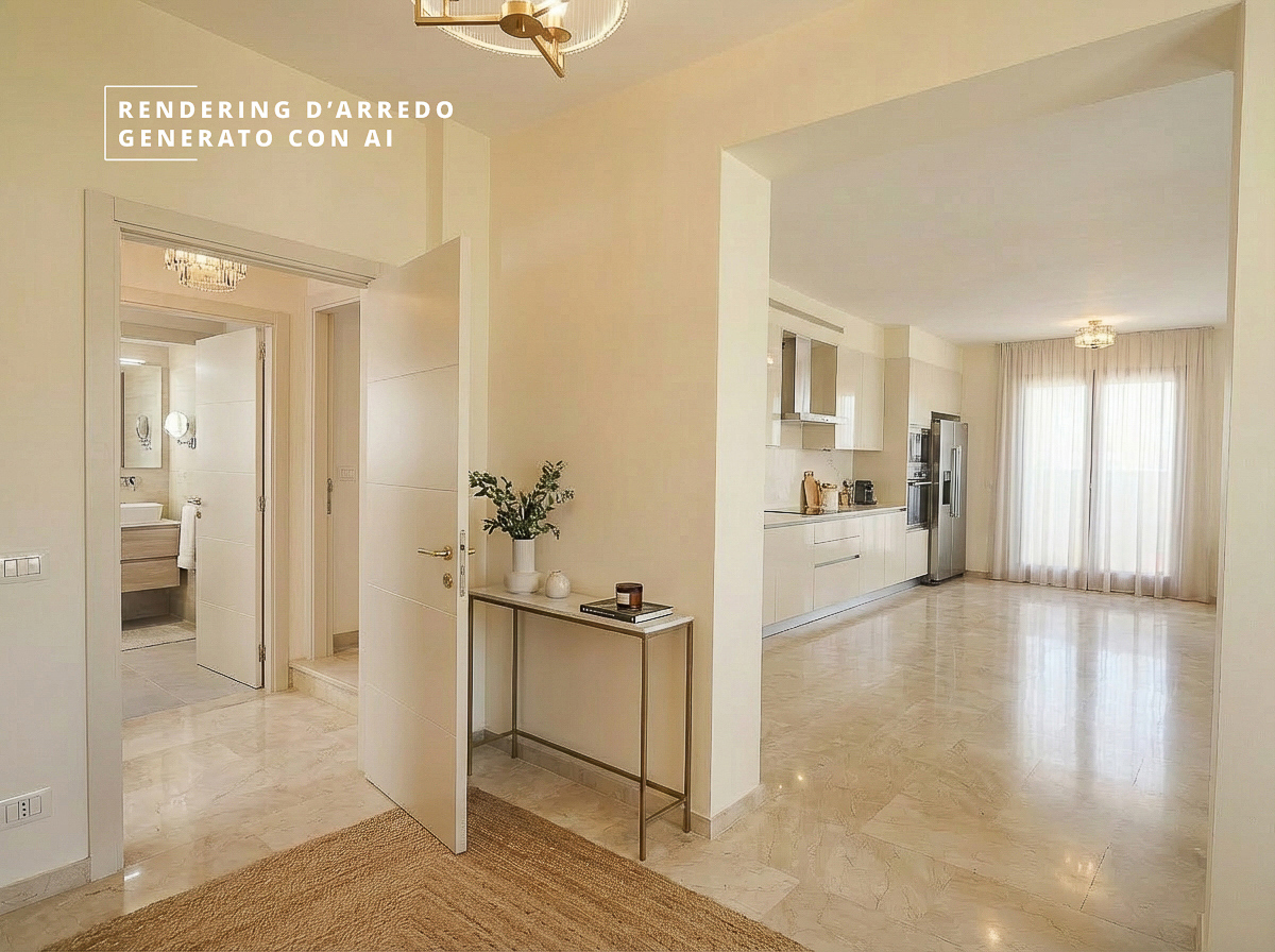Dallaltra unidea di come pu diventare, attraverso rendering che mostrano il potenziale, lo stile, latmosfera che pu nascere scegliendo colori, arredi, dettagli personali.