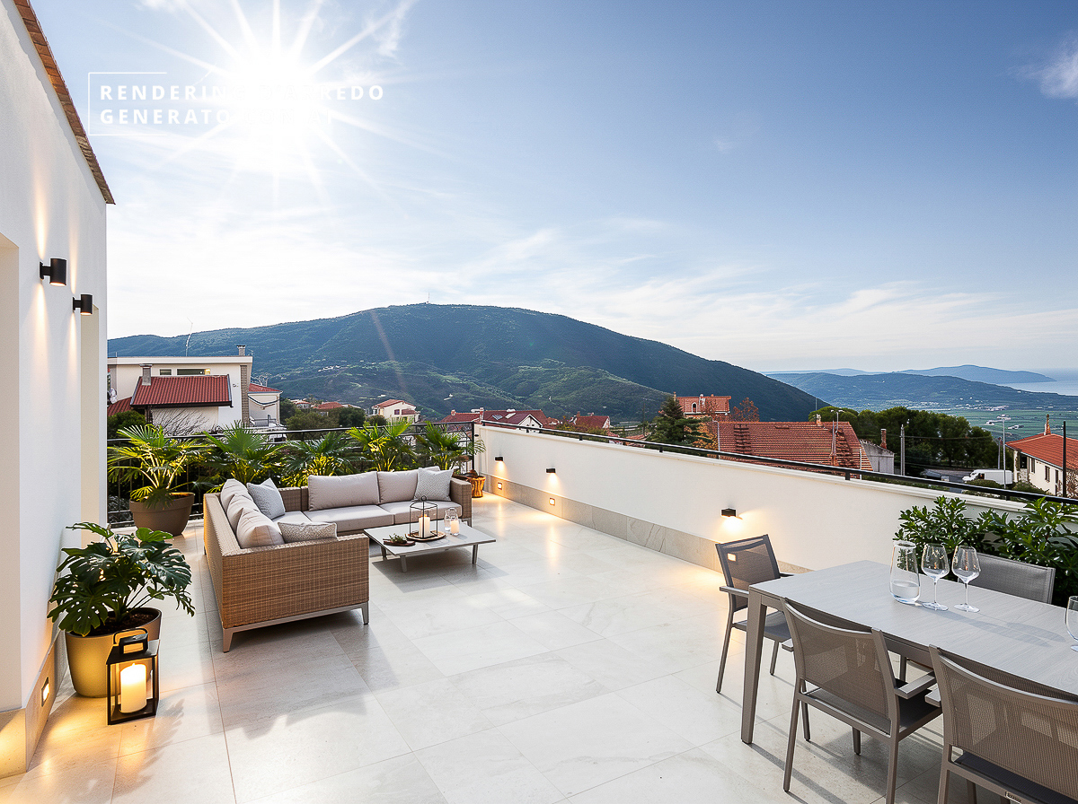 Il terrazzo si apre e cambia il modo di stare: pranzi lenti, tramonti che colorano tutto, serate che finiscono senza guardare lorologio.