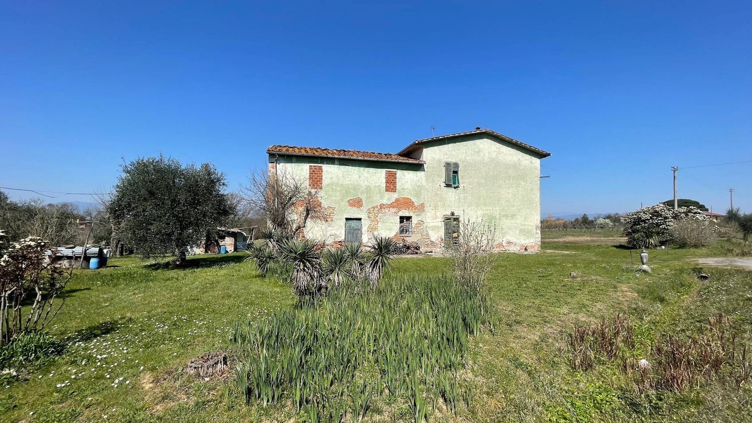 Latmosfera è quella delle dimore di un tempo, con dettagli architettonici tipici e un potenziale straordinario per chi desidera ristrutturare con gusto e personalità. Il cuore della proprietà è senza dubbio il grande terreno che la circonda: tre ettari di verde, impreziositi da 80 piante di ulivo che donano un carattere unico a questo angolo di Toscana.