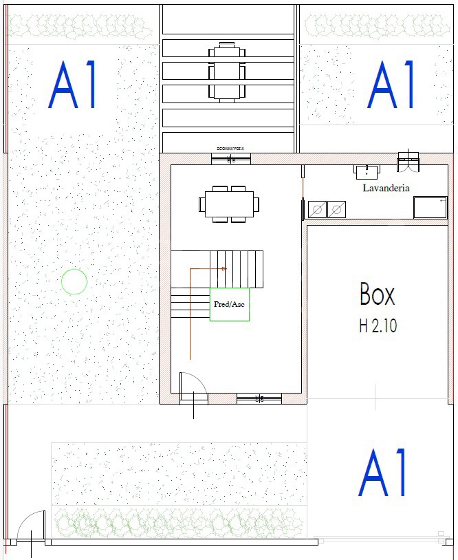 Al piano primo un'ampia zona giorno con cucina abitabile, studio/ripostiglio bagno e terrazzo.