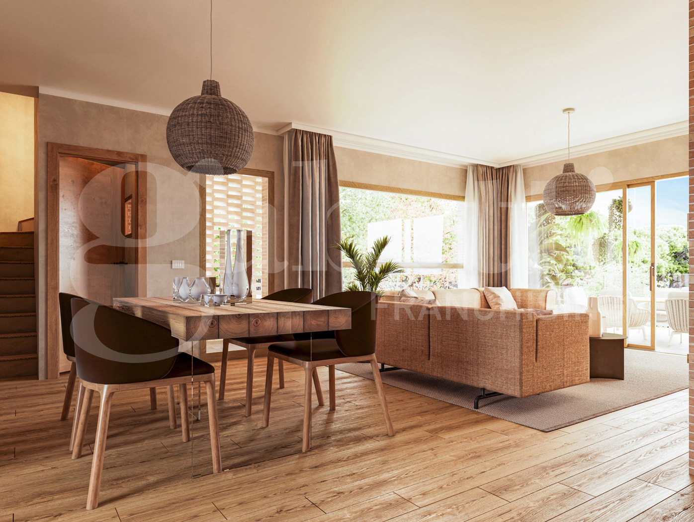 VILLA T-3 e T-4 A PARTIRE DA EURO 860.000,00 (235 mq ) -Piano Rialzato: Area living con camino e cucina avista, caratterizzata da ampie vetrate panoramiche dalle quali si accede alla terrazza collegata con il giardino.