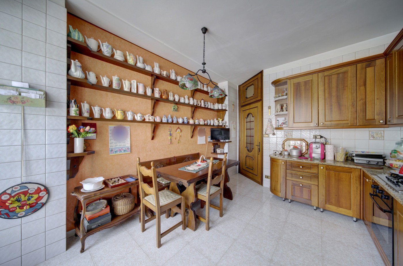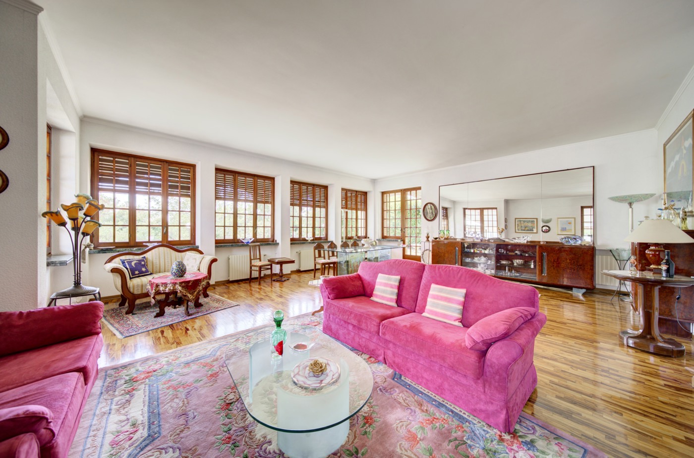Sempre al piano, vi un salone molto grande e luminoso, caratterizzato da eleganti pavimenti in parquet e grandi finestre affacciate sul giardino; la cucina abitabile, anchessa molto luminosa, offre spazio per una zona pranzo conviviale, perfetta per la vita familiare quotidiana.