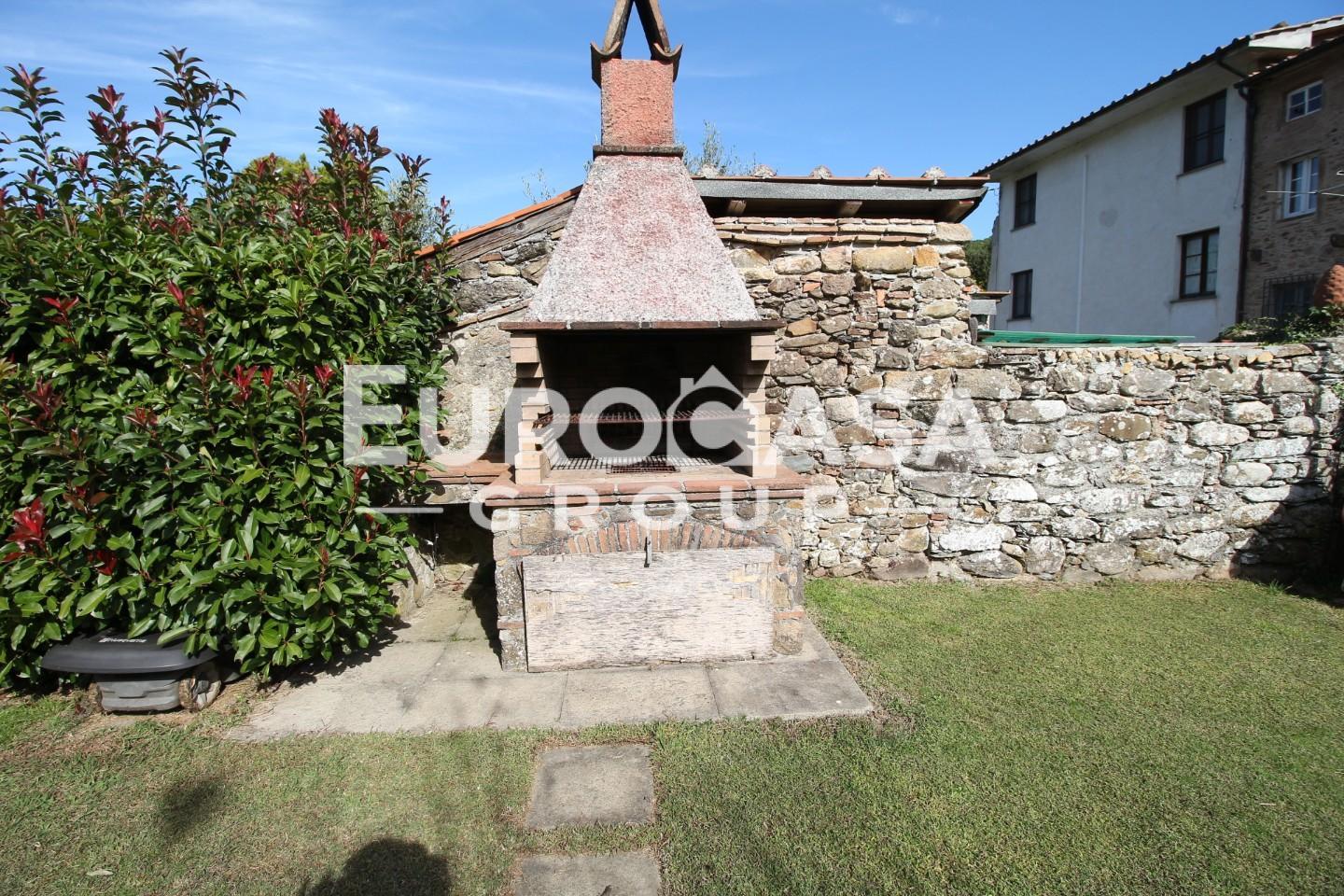 Il fabbricato ha un bello spazio esterno ben curato è tutto recintato da muri in pietra faccia vista che delimitano la grande resede che si trova davanti dell'abitazione che fa tutto un corpo con il grande e curato giardino dotato di irrigazione automatica e forno, sul retro la proprietà dispone di una seconda resede di 25 mq attaccata all'abitazione e distaccato di pochi metri dalla casa di un terreno di oltre 210 mq dove possono parcheggiare più auto e dove è presente una comoda casetta in legno.
