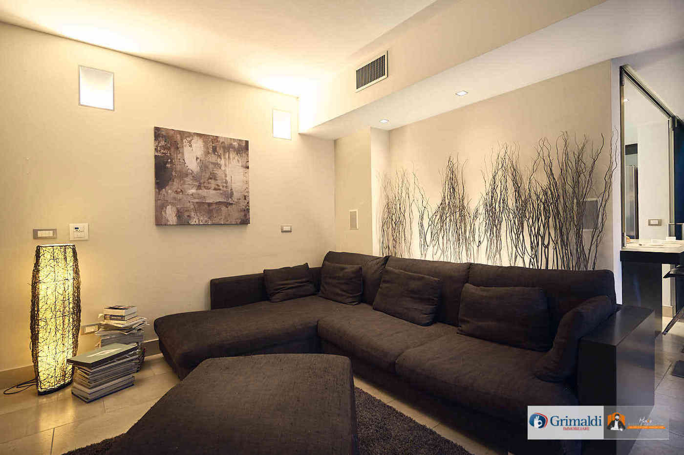 Il primo ambiente un disimpegno arredabile con armadio guardaroba e bagno di servizio in mosaico sicis, ampio soggiorno con caminetto a gas e zona pranzo con cucina su misura dotata di bancone per la colazione; al piano troviamo inoltre area esterna pavimentata ideale per cene e pranzi allaperto.