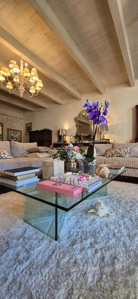Tramite la scala a vista si accede ad un BELLISSIMA ZONA LIVING grande quanto il salone e pavimentata in parquet, particolari le porte finestre che si affacciano a sud dando luce a tutto l'ambiente con vista sul giardino; disimpegno notte, ulteriore bagno e due camere da letto di 32 e 20 mq mansardata.