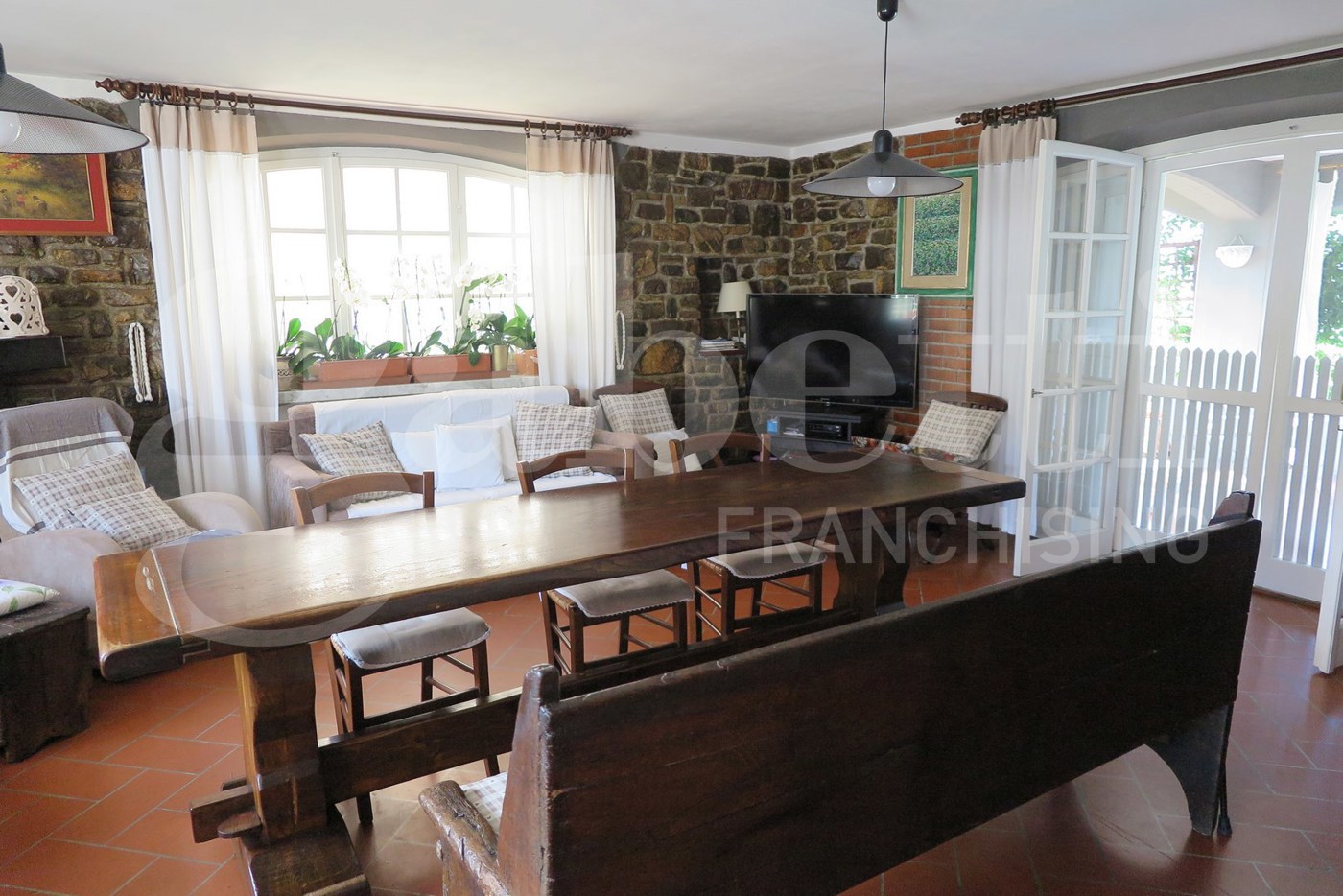 CASTELNUOVO: villa esclusiva di circa 500mq su tre livelli con vista fino al mare. La villa composta da 6 camere con 6 bagni, tre cucine, terrazze, porticati, piscina inserita in 4000 m di giardino e garage per 4/6 auto. Finiture lussuose, non richiede lavori ed abitabile subito.