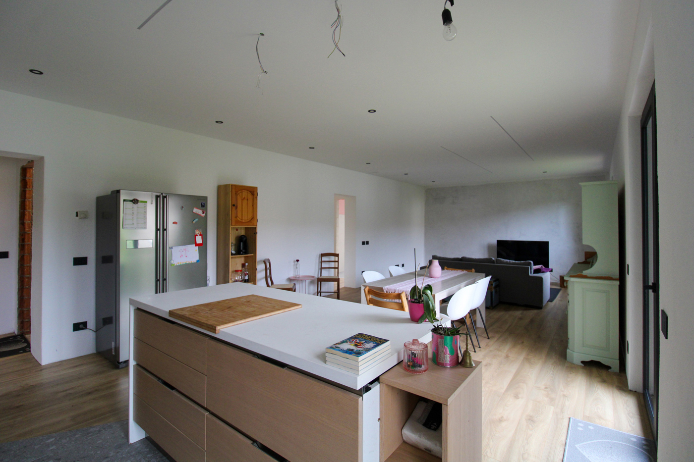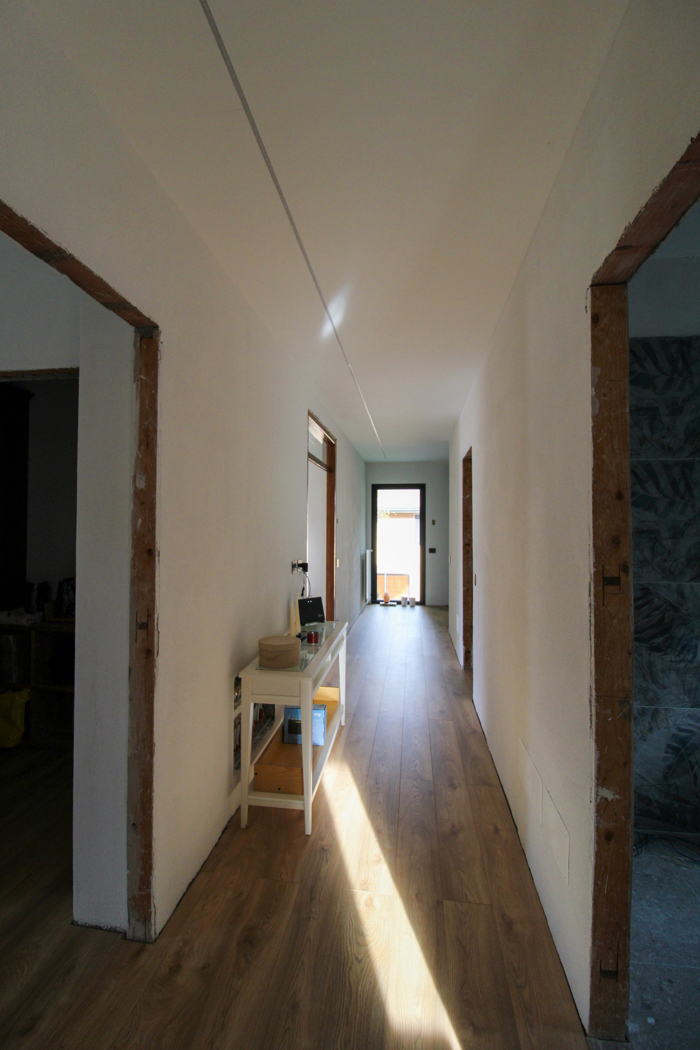 A pianterreno troviamo disimpegno, ampio e luminoso soggiorno con cucina a vista, bagno, locale caldaia, locale lavanderia e box. Al primo piano la zona notte composta da un ampio corridoio, quattro camere da letto di cui due con affaccio su balcone panoramico, cabina armadio e bagno.
