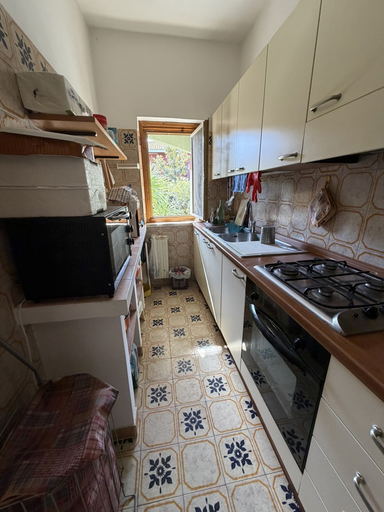 La cucina semi-abitabile separata, mentre un bagno di servizio completa il piano.