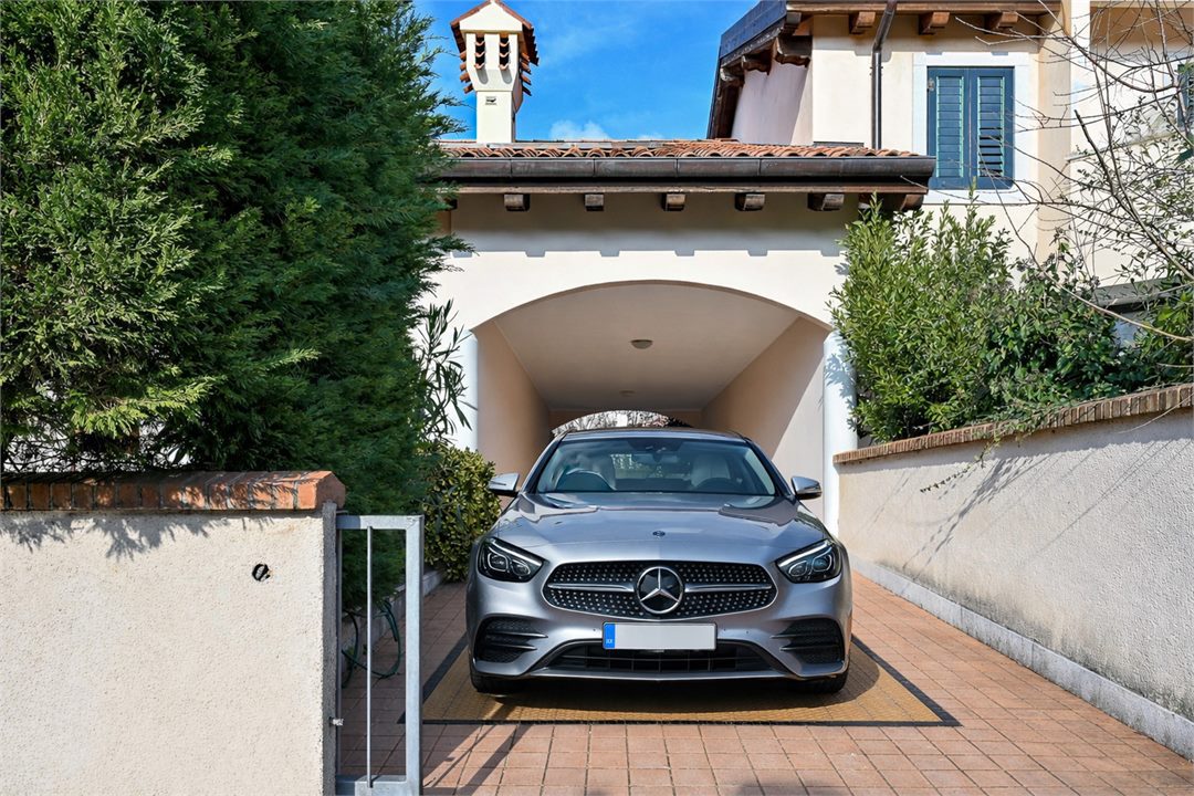 Dalla zona living si accede direttamente allo splendido giardino privato, uno spazio riservato e ben sfruttabile, ideale per pranzi all'aperto, relax e tempo libero, in un contesto di assoluta privacy.\nTramite la scala di legno si accede alla zona notte mansardata, ma con ottime altezze, che ospita tre camere da letto di generose dimensioni, e due bagni entrambi completi e finestrati.\nIl piano è impreziosito da una gradevole terrazza a vasca, perfetta per godere della quiete e del verde circostante.\nAl piano interrato completa la distribuzione interna un'ampia taverna multifunzionale con uno spazio estremamente versatile, utilizzabile come sala hobby, studio, area relax, palestra o locale di servizio, adattabile alle più diverse esigenze abitative e dotata di un ulteriore bagno finestrato.\nInclusi nella proprietà un porticato con accesso carrabile dove poter parcheggiare in sicurezza la propria automobile.\nProposta immobiliare di qualità, perfetta per chi desidera vivere in un contesto signorile e curato, immerso nella natura, a breve distanza dal mare e dal centro di Trieste.\nPossibilità di acquisto di una barca vela ubicata nel porticciolo di Sistiana.\nImmobile allestito da Rehab Design.
