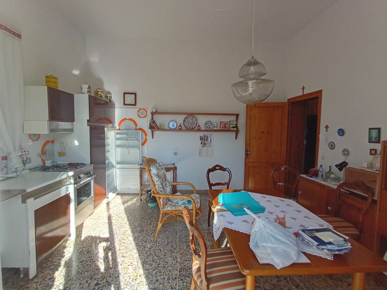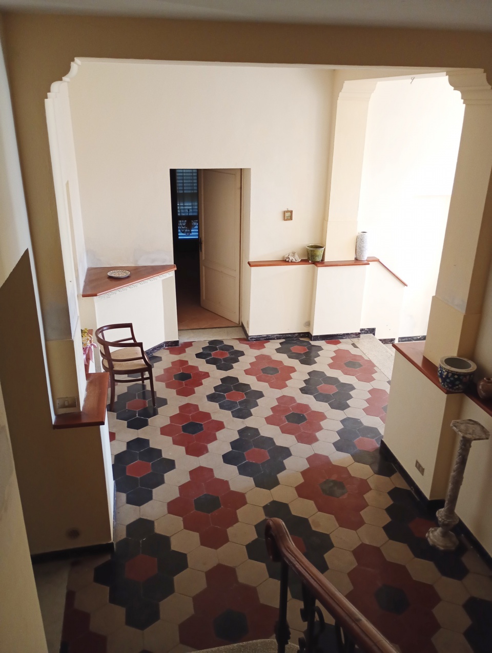 L'immobile misura circa 280 mq ed è così suddiviso: - piano terra con ingresso ed ampio androne scale, saletta, camera, servizio con doccia e finestra, 2 grandi vani pluriuso, ripostiglio, garage di circa 18 mq, vano caldaia, ripostiglio esterno; - piano primo con ingresso, ampia cucina abitabile con grande terrazzo, sala da pranzo con balcone, soggiorno (utilizzabile come terza camera da letto), 2 camere di cui una con balcone, studio, bagno con finestra.