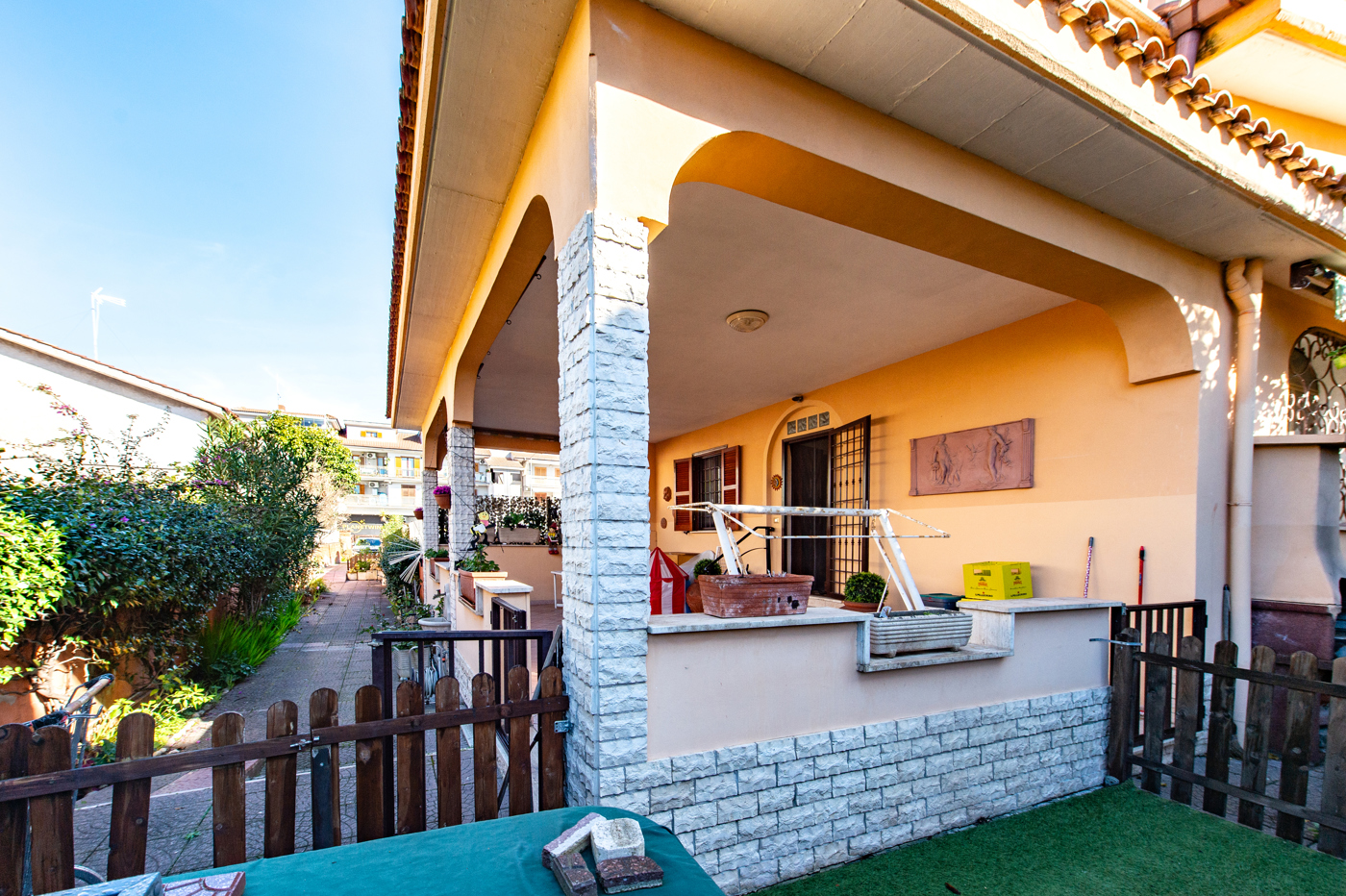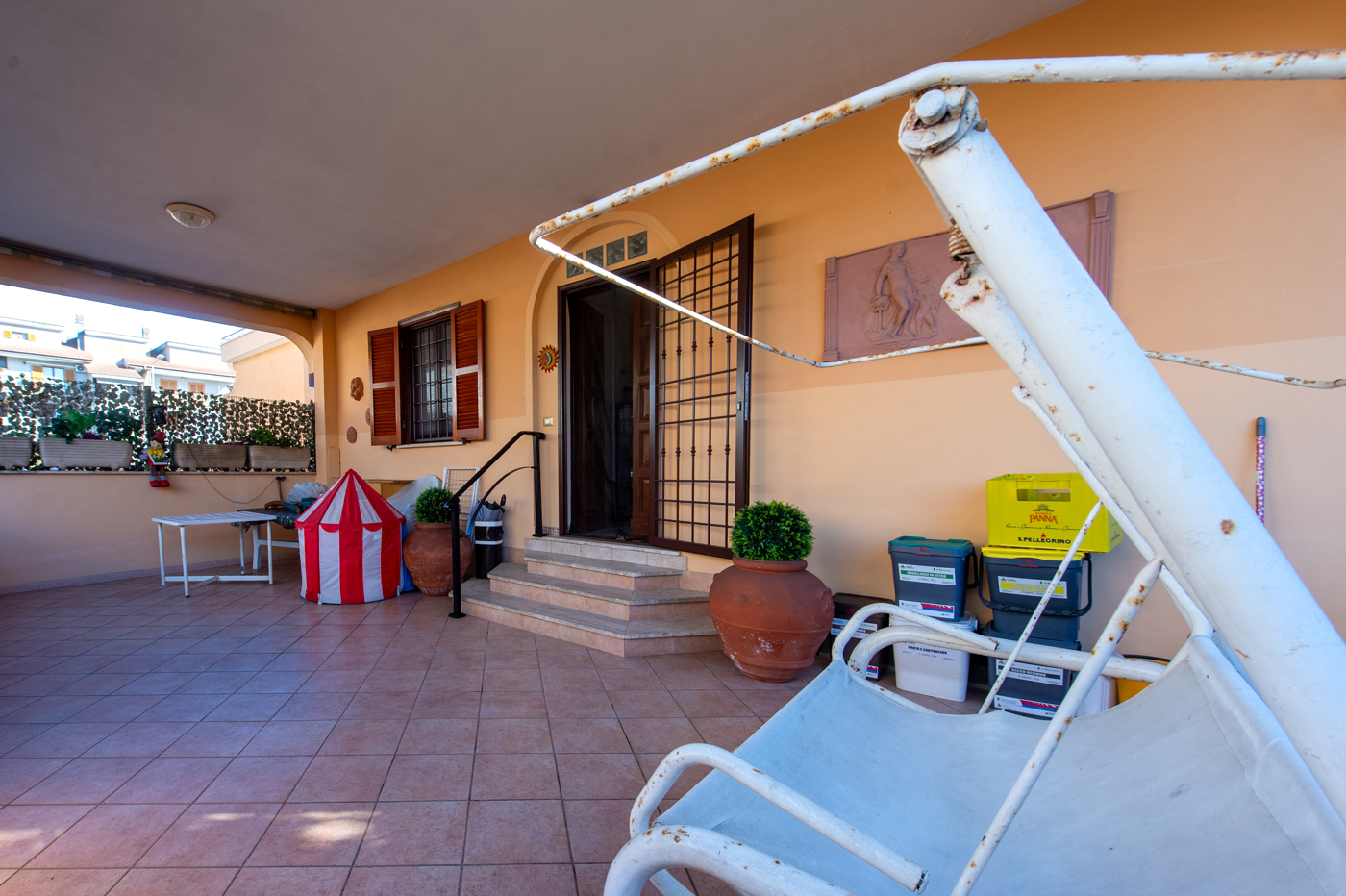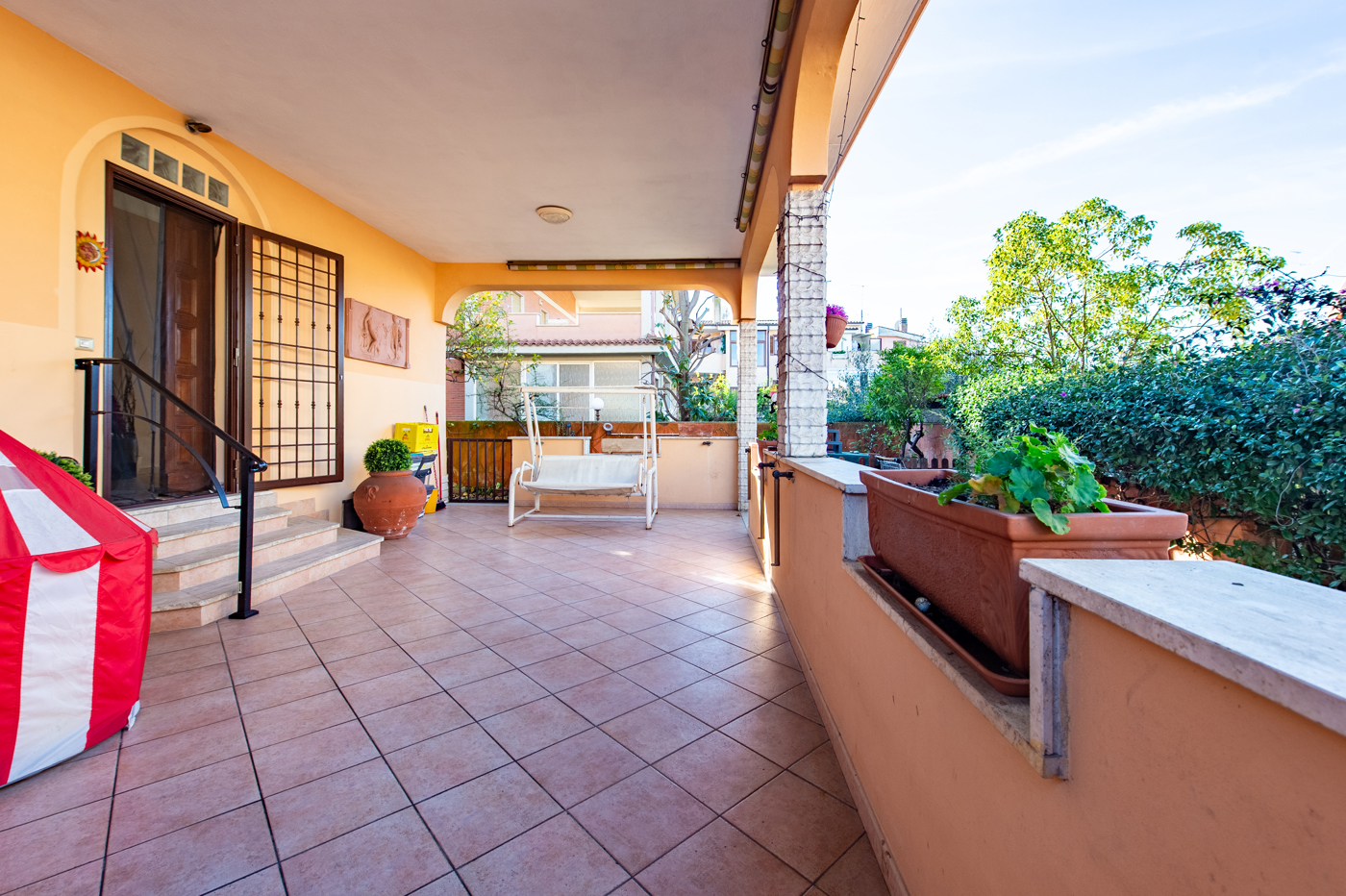 Un lungo giardino ove si pu parcheggiare la propria auto ci invita al primo ingresso di un spaziosissimo patio dove godere con le persone pi care cene e feste allaperto.