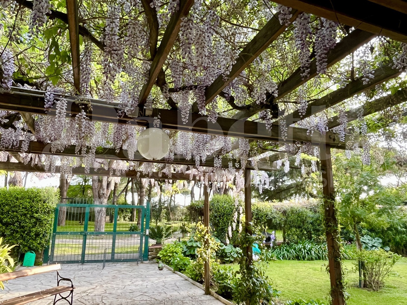 Il giardino completamente perimetrato da muro di recinzione ed ricco di piante ornamentali e numerosi alberi da frutta ideale per trascorrere momenti di relax anche in compagnia.