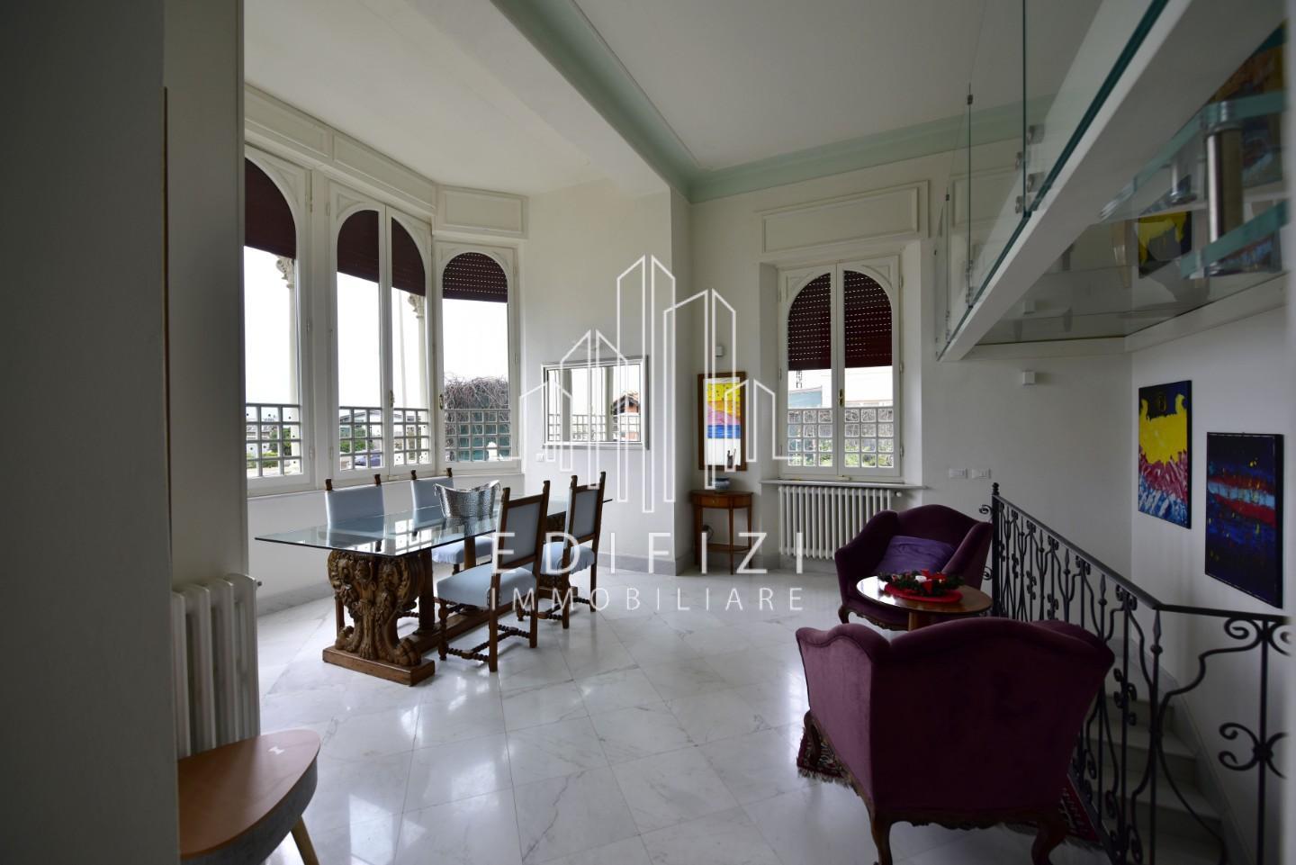 ristrutturata completamente nel 2020 e riportata al suo originale valore architettonico : Sono stati mentenuti i preziosi pavimenti in marmo bianco di Calacatta (comprese le scale interne) le porte a vetrata in stile liberty e sono stati recuperati tutti gli affreschi a graffito fiorentino che ornano il sottotetto esterno e le arcate delle finestre.