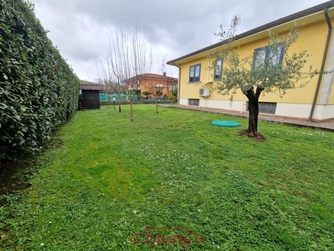 Il bel giardino, di circa 300 mq, in parte piastrellato, permette di godersi i momenti conviviali all'aperto e l'accesso di una o più auto all'interno della proprietà. L'immobile, in ottime condizioni, è ubicato in contesto tranquillo di villlette, vicino al centro del paese ed ai principali servizi.