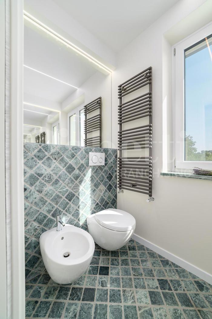 La villa composta da vari spazi esterni e interni ben suddivisi e allestiti con materiali di pregio.