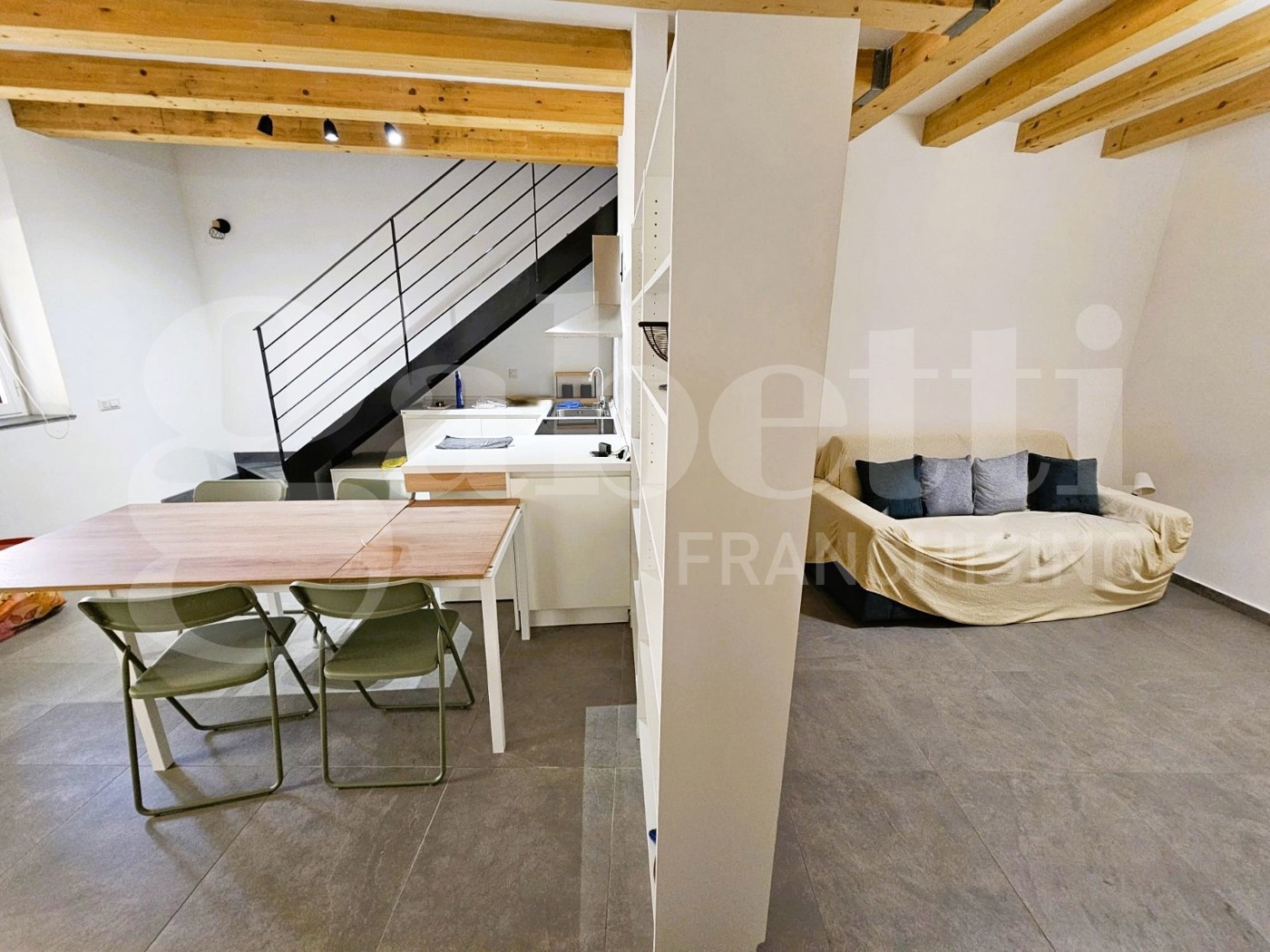 Il piano superiore mansardato ma accogliente e spazioso, caratterizzato da una camera con cabina armadio, un secondo servizio ed una pratica verandina.