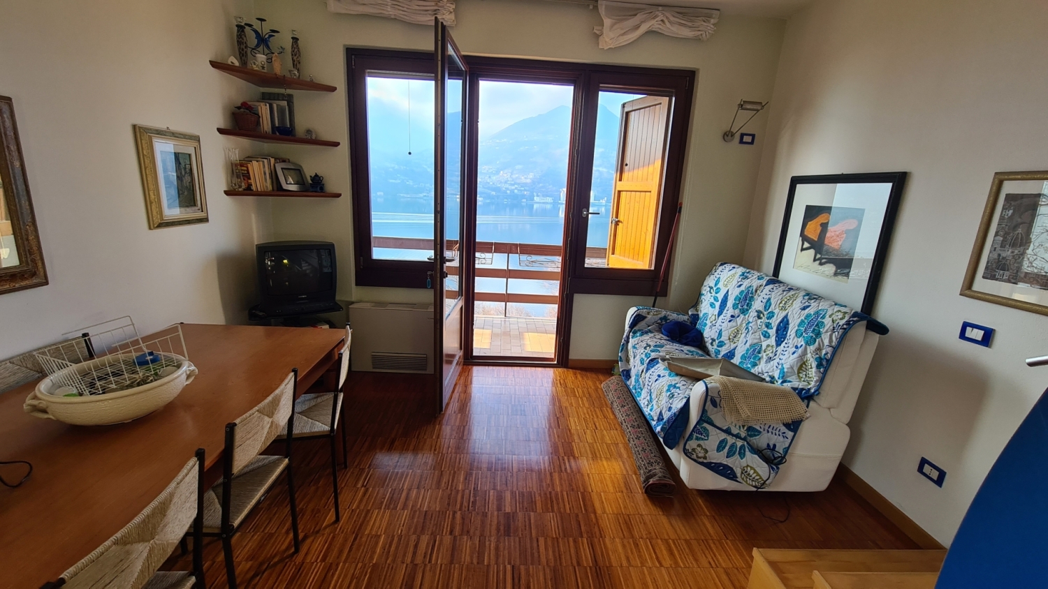 Accesso diretto al lago con ascensore e grande piscina condominiale, spiaggia comunale con ulivi e porticciolo . Cucina a vista, soggiorno con uscita sul terrazzo, 2 camere con bagno e terrazzo.